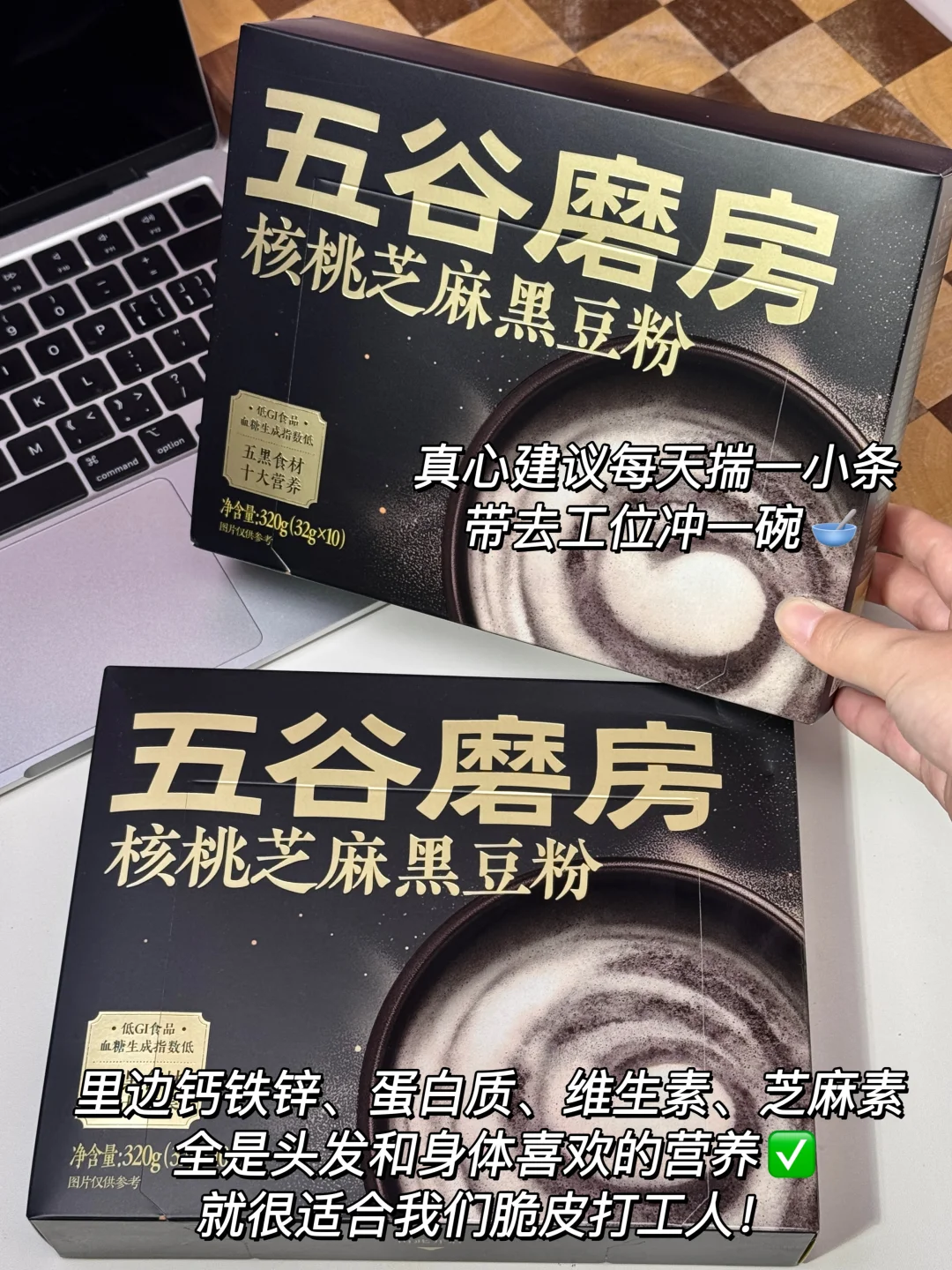 五黑粉我用的是五谷磨房核桃芝麻黑豆粉👍🏻