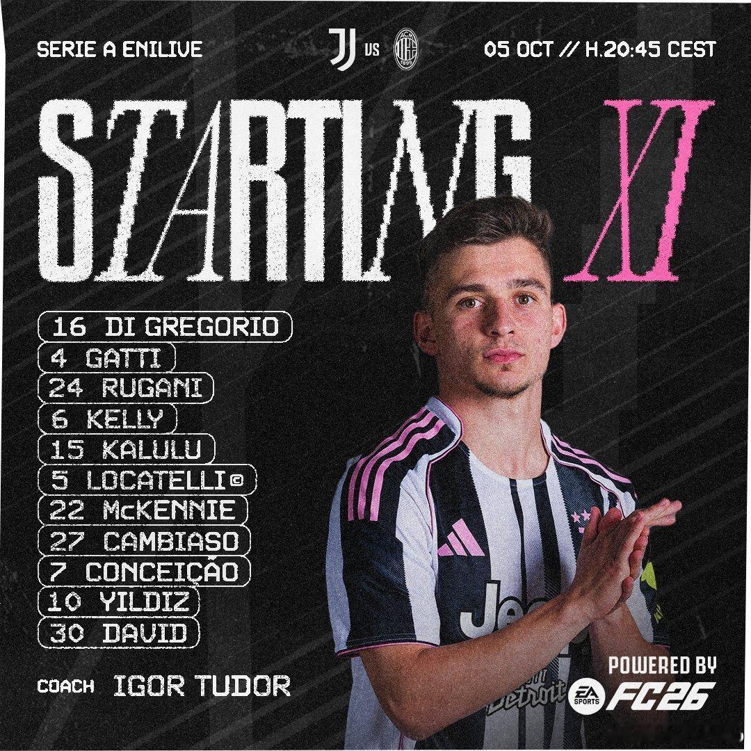 你妇首发(3-4-2-1):迪格雷戈里奥/加蒂、鲁加尼、凯利/卡卢卢、洛卡特利、麦肯尼、坎比亚索/小孔塞桑、伊尔迪兹/戴维。[举手]