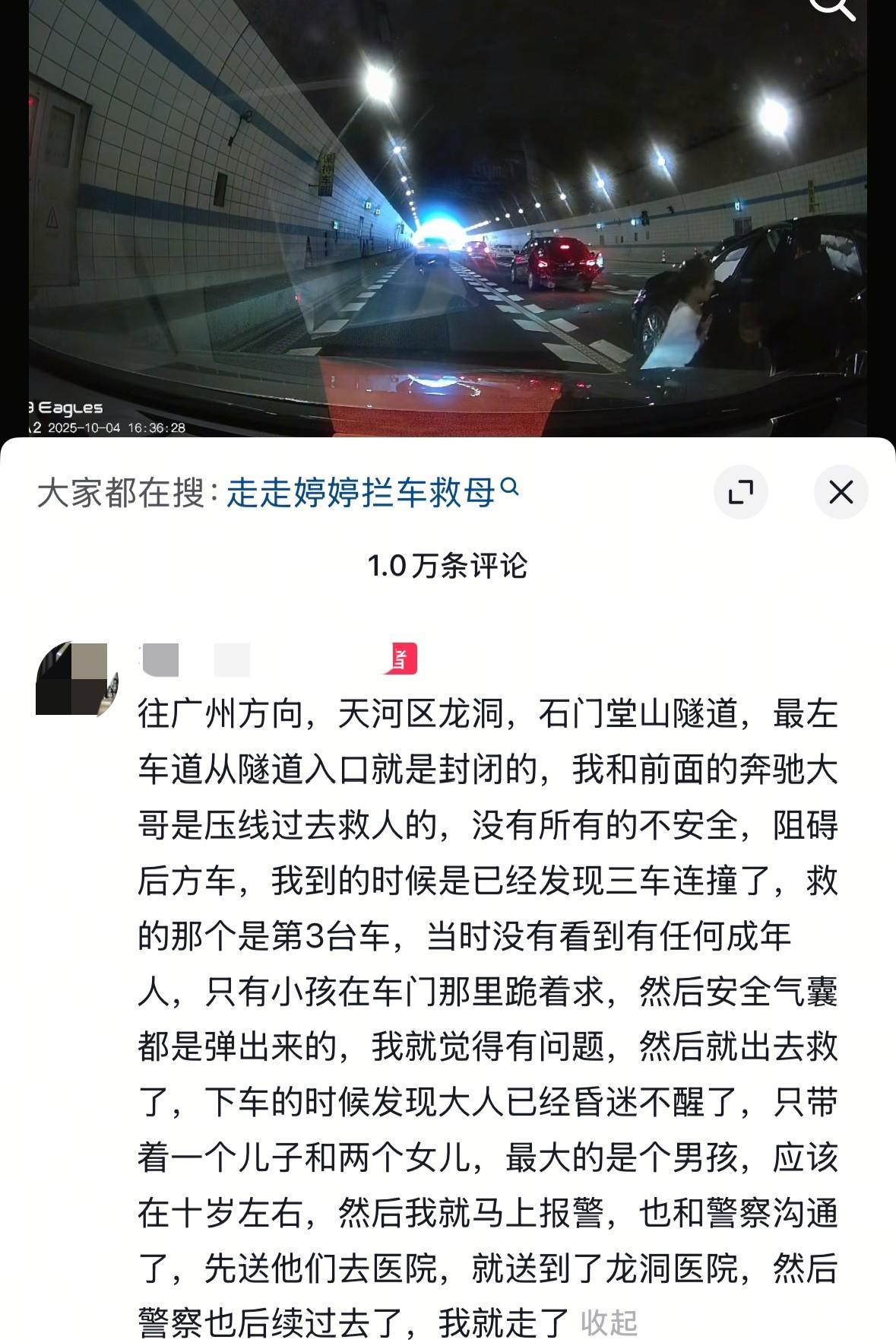 隧道里那声“救我妈妈”!广州男孩一跪,过路司机全停了广州一条隧道里,轿车撞