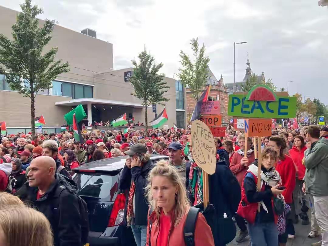 【有良知的荷兰人在用行动支持加沙】 当地时间10月5日,荷兰阿姆斯特丹举行大规模