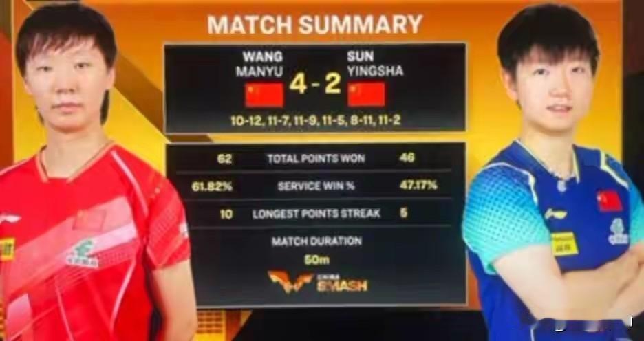 孙颖莎又让球迷失望了! 孙颖莎在国外拿个大满贯赛冠军轻而易举 但却在这次WTT北京大满贯赛决赛中翻船! 她在世锦赛、世界杯上夺取冠军很容易 但想夺取最贵重的奥运会单项金牌却很难! 这种现象似乎与世界排名第一不太般配,肯定不是技术不行,谁能说清问题出在哪里? 这是10月5日晚WTT北京大满贯赛女单决赛观后感。