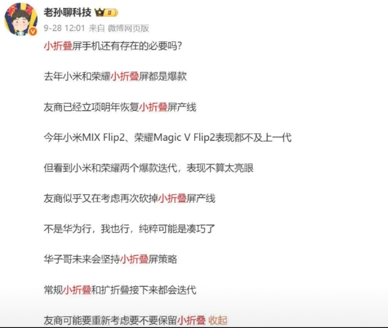 华为是唯一明年确认迭代小折叠屏,原本计划重启小折叠部分厂商再次决定放弃