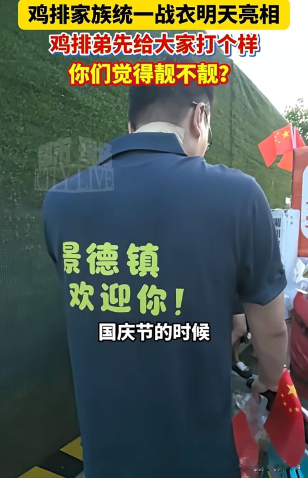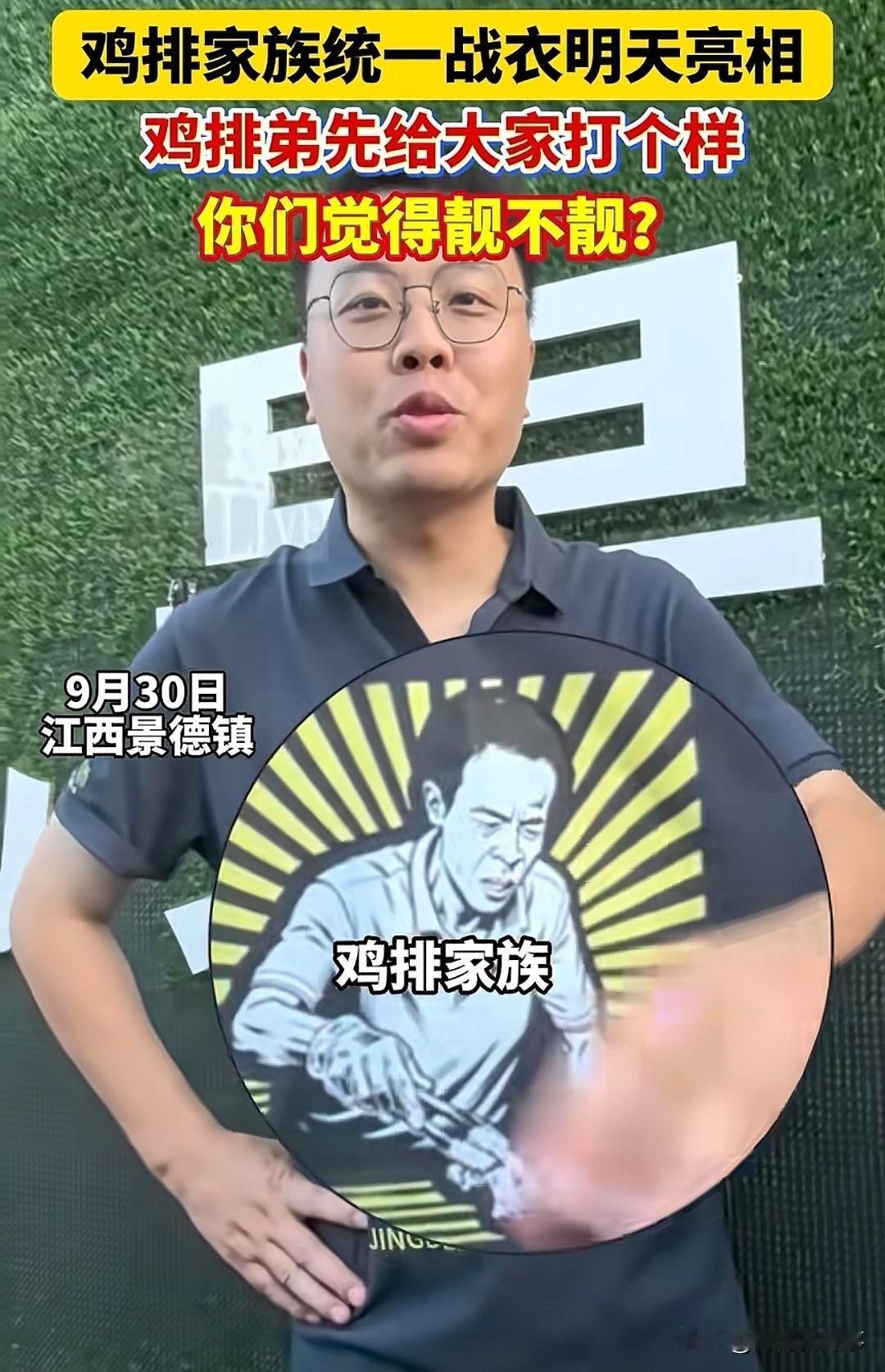 “江西景德镇这鸡排家族的统一战衣,也太有范儿了!9月30日,鸡排弟先穿着定制战衣