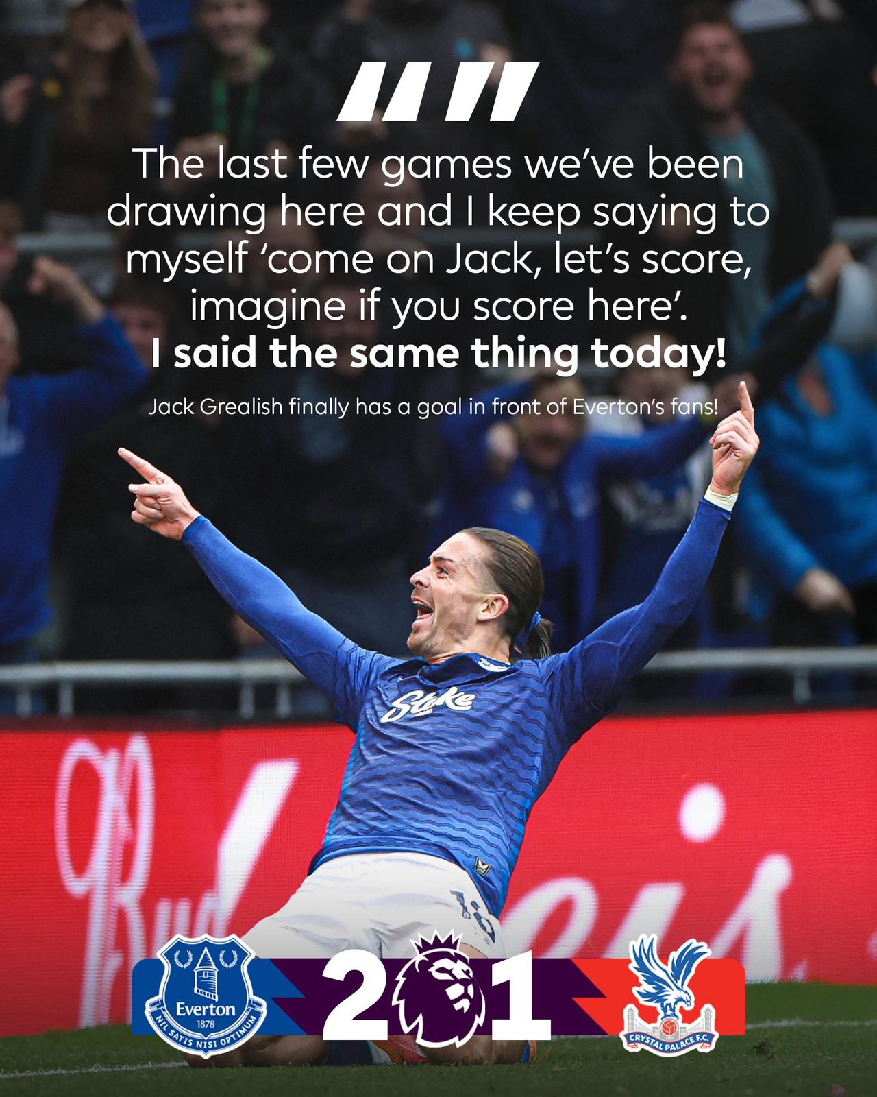 【相信自己能行】埃弗顿主场2-1击败水晶宫,终结了水晶宫各项赛事19场不败的记录,格拉利什贡献幸运绝杀。 格拉利什赛后谈自己的进球:“你们知道最疯狂的是什么吗😉?我们之前在这里踢的几场比赛都是平局,我总在85分钟时对自己说,‘加油杰克,去进球,想象一下如果你现在进球了’。我对阵维拉时这么说过,对西汉姆时也这么说过,但我都没进球。所以今天我又说了同样的话,然后我进球了,我跑向了我爸妈所在看台的位置,所以这真的很棒。” “这个进球献给所有埃弗顿球迷,感谢他们让我在这里感到如此受欢迎。”埃弗顿 曼城资讯