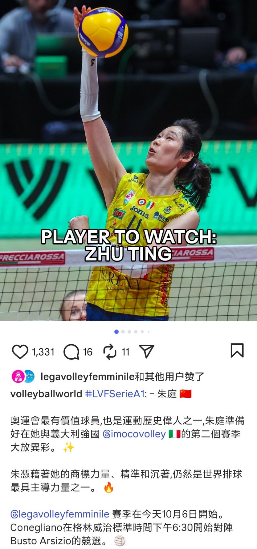 国际排联、意大利联赛官方社媒联合发布:奥运会最有价值球员、运动史上最伟大球员之一的朱婷,将在她效力科内利亚诺的第二个赛季大放异彩!朱婷[超话]