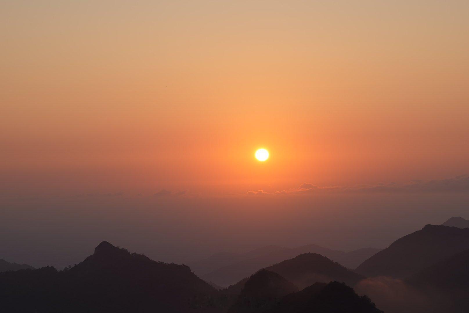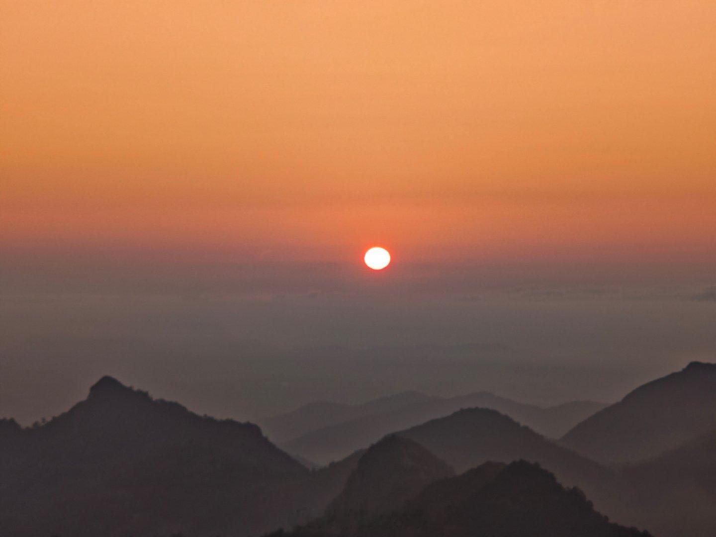 盆友们,和你们分享一下今天的日出。阳光折射在北纬20.9度。