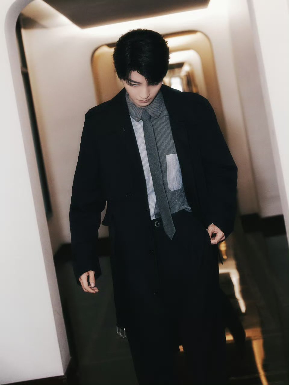 王俊凯黑色长风衣造型王俊凯中秋营业王俊凯中秋营业啦