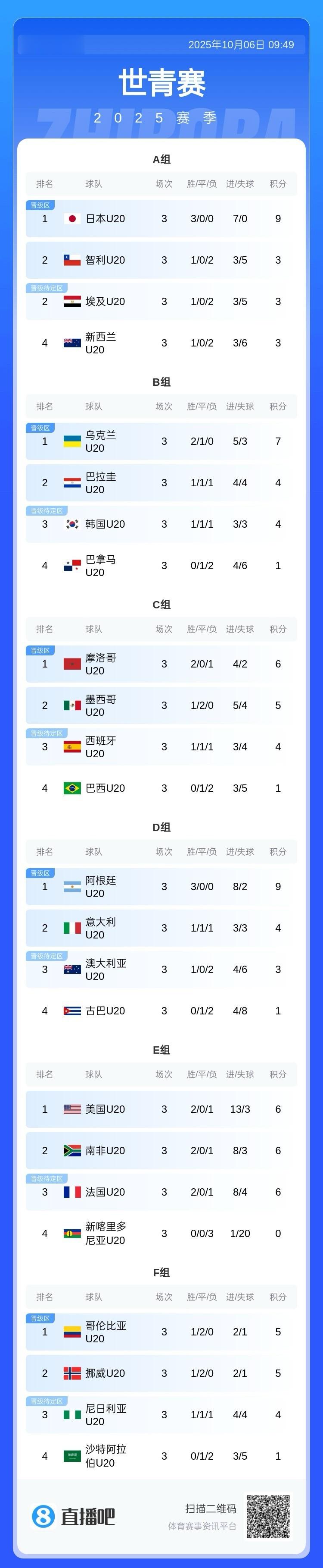 直播吧10月6日讯世青赛结束小组赛争夺,亚足联球队方面,日韩晋级16强,沙特、澳大利亚出局。