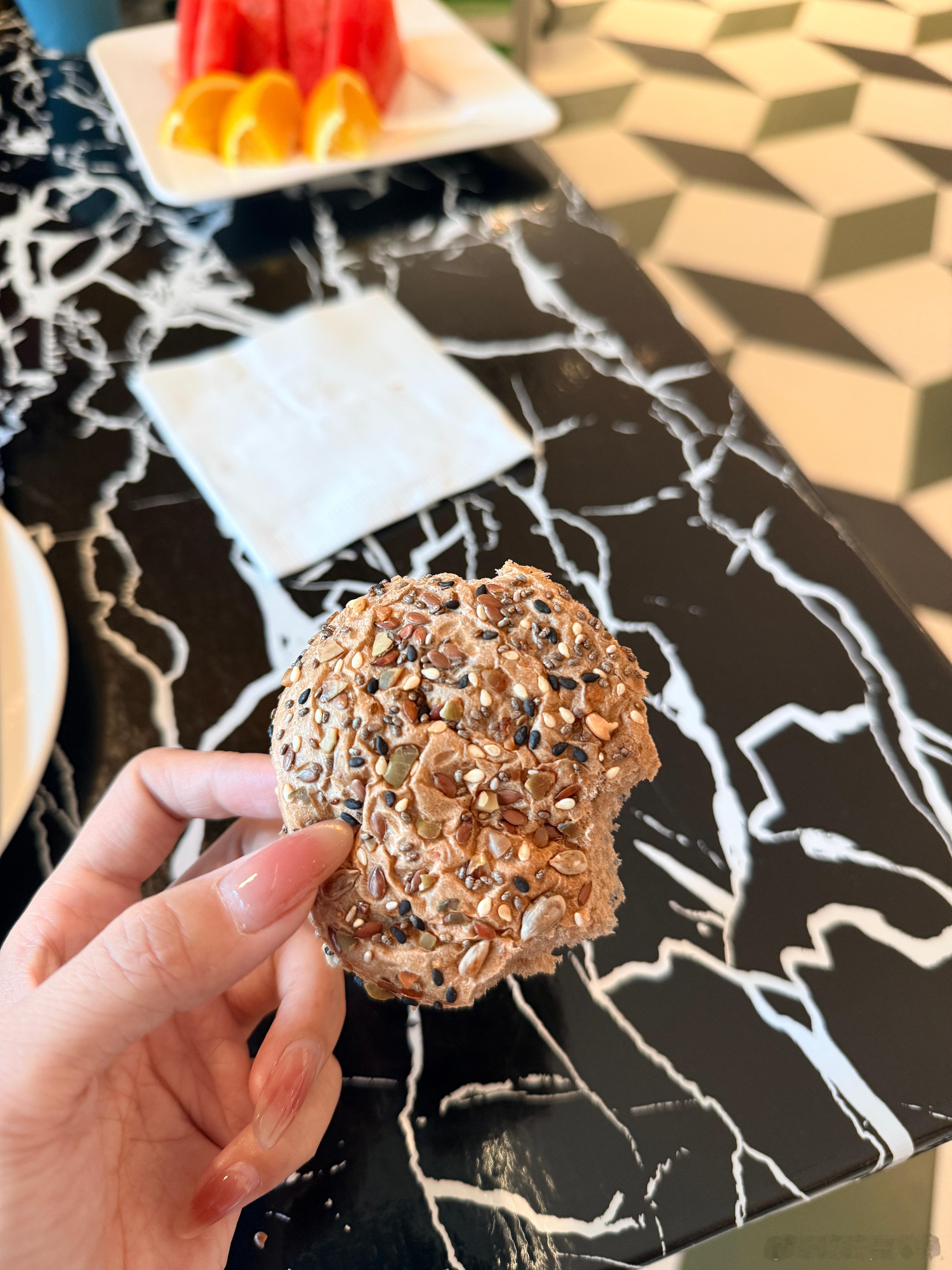 早安,吃着这个面包就在想:如果一个蟑螂卵鞘粘在这上面,是不是很难被发现啊[思考]早餐打卡早餐