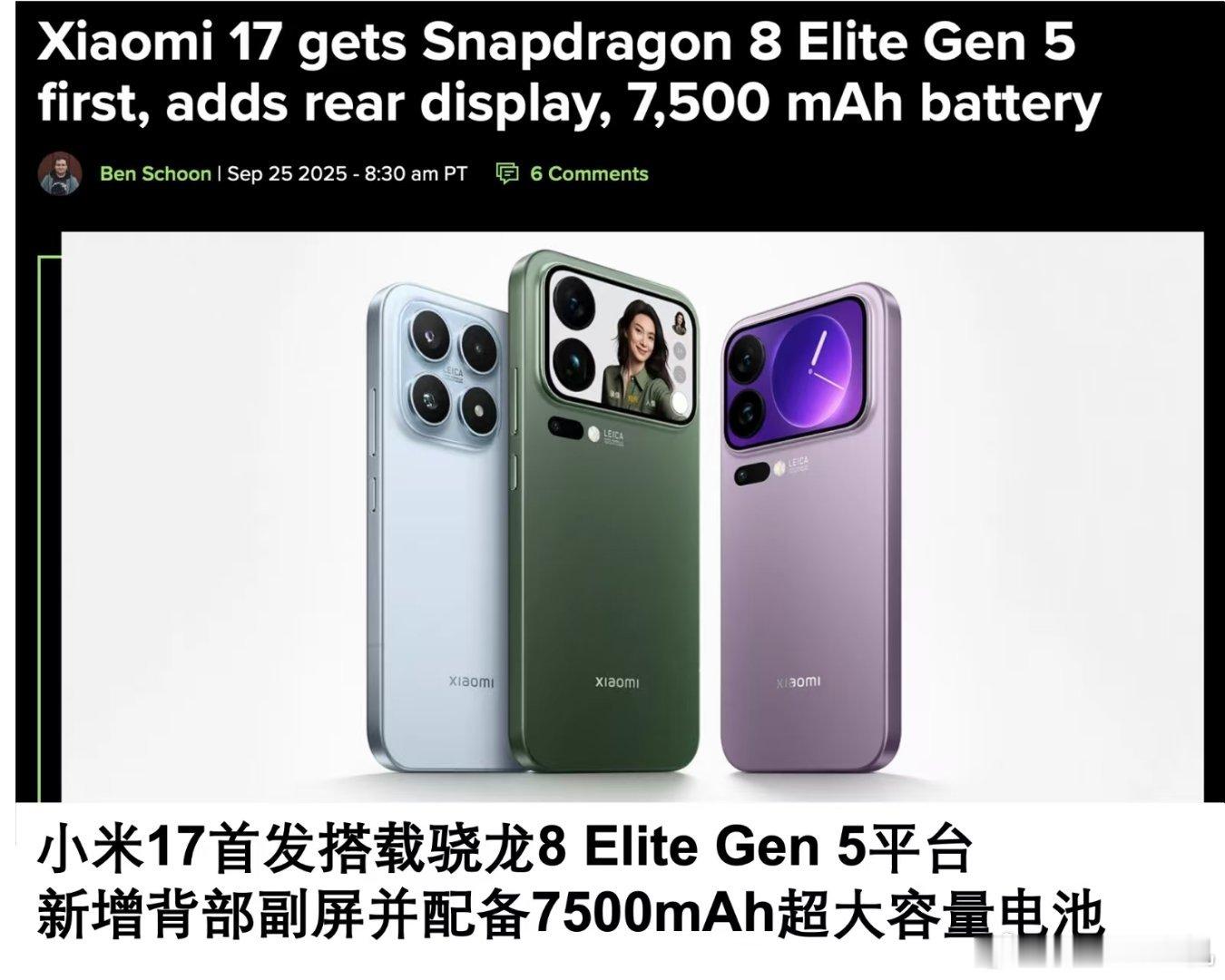 不得不说我米17系列以创新硬实力成为现象级产品,五天销量破百万,全系列同比增长20%,国内外叫好又叫座,最引人注目的核心亮点背屏覆盖摄像头区域,还支持时间显示、通知预览、音乐控制等功能,而后置自拍实时预览解决盲拍痛点,同时还能还能联动小米汽车、控制智能家居,实现打车进度、航班信息等跨设备同步。