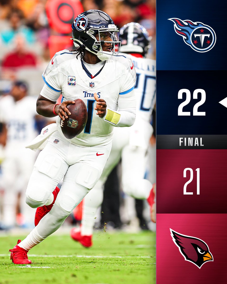 NFL官方X账号发推特报道,田纳西泰坦队狂轰19分完成逆转,迎来四分卫CamWard的NFL生涯首胜!