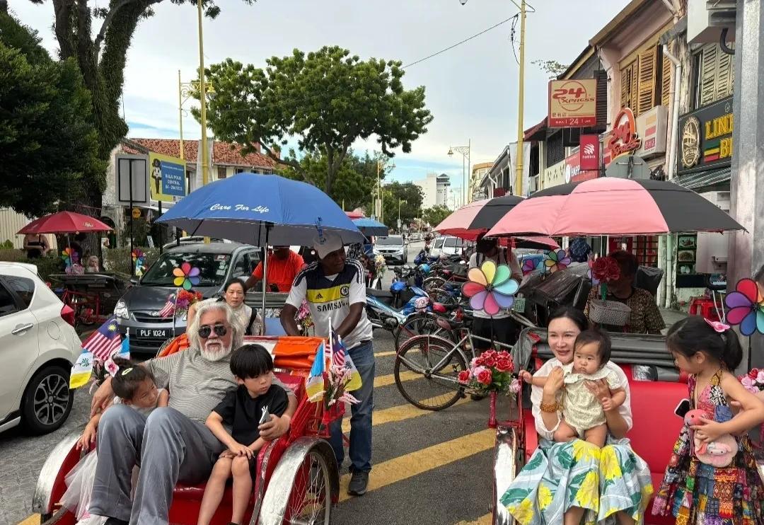 张纪中带着老婆孩子去马来西亚槟城度假,体验当地的人力车。 74岁的张导须发皆白,身材肥胖,肤色偏黑,戴着黑超,一看就是七十几的古稀老人了,他一手揽着两个孩子坐在车上,笑的一脸幸福。 老婆杜星霖穿着白衫花裙,手里抱着小女儿小龙珠,肤色很白,长发齐腰,又黑又多,一看就是血气充足的女人,生了四个娃了,这身体保养得是真好。 不过这次他们全家出游,好像没有见到大儿子马丁?不知道是不是没出镜呢?