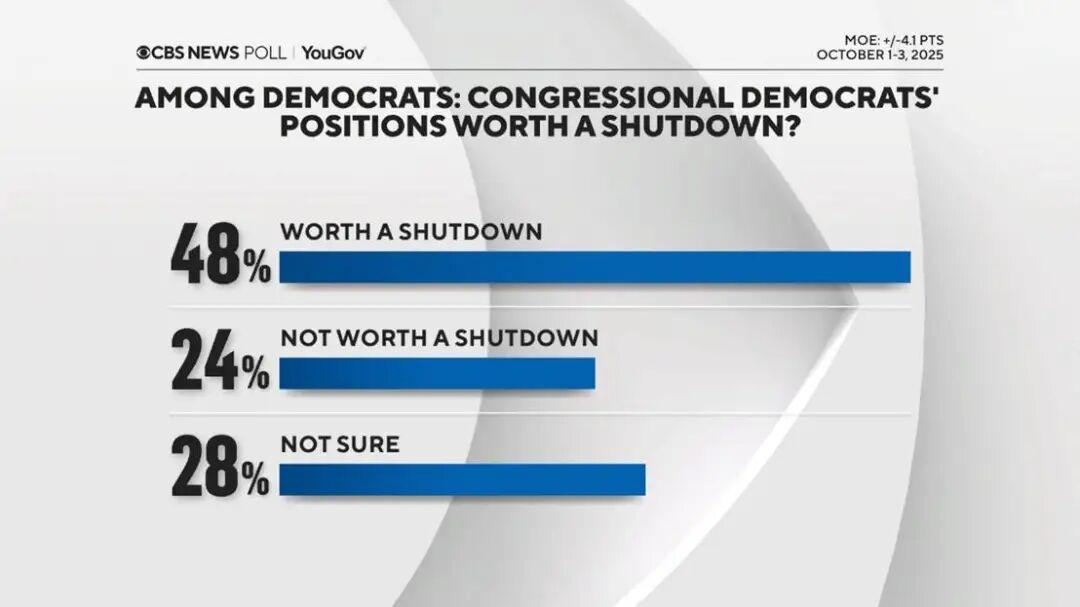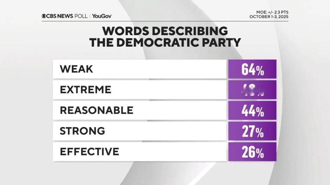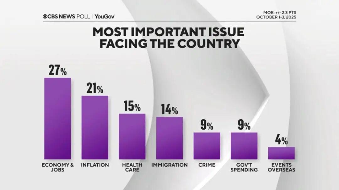 据CBS与YouGov的最新民调显示,在美国政府的这场关门争斗中,没有任何一方获