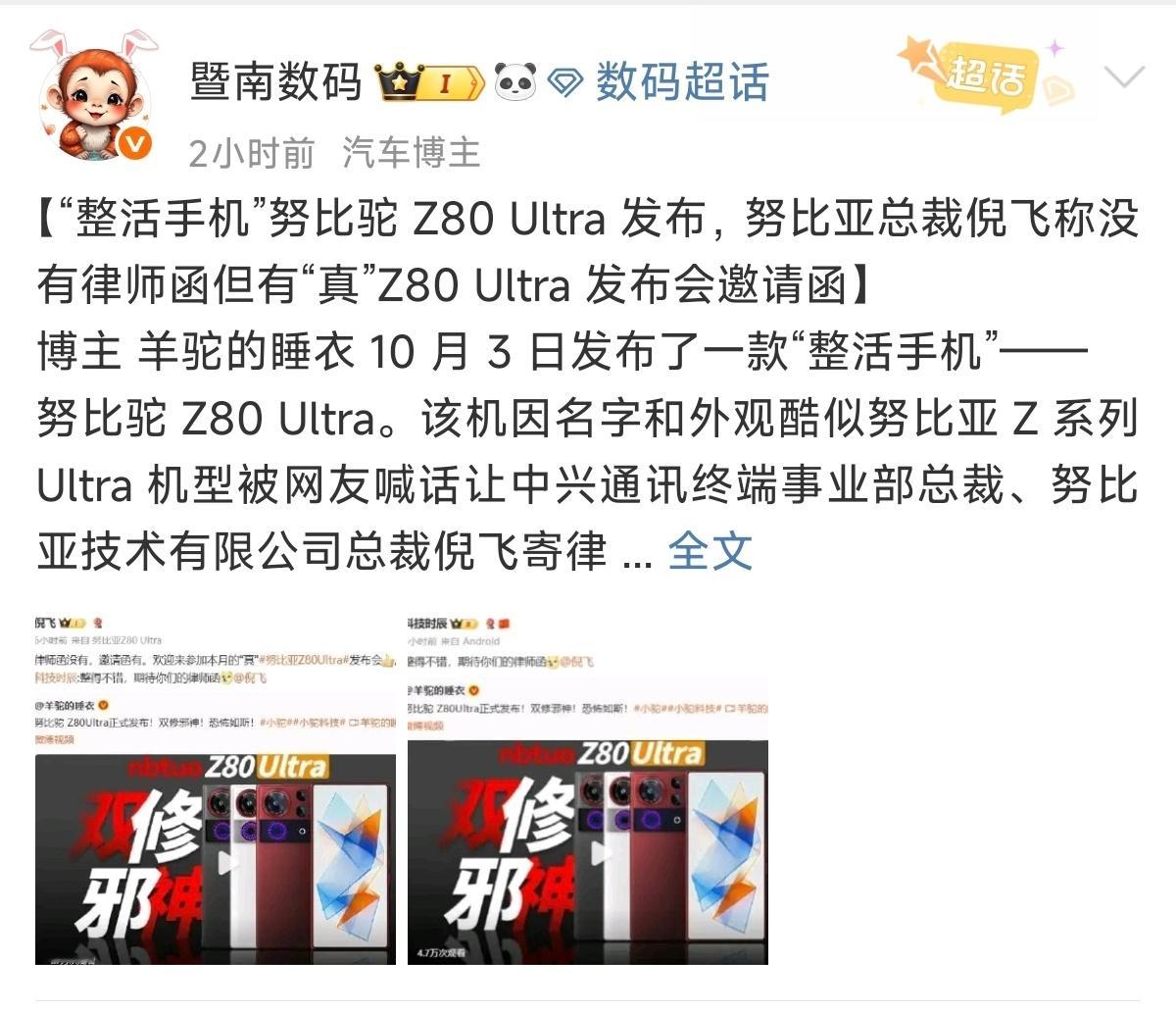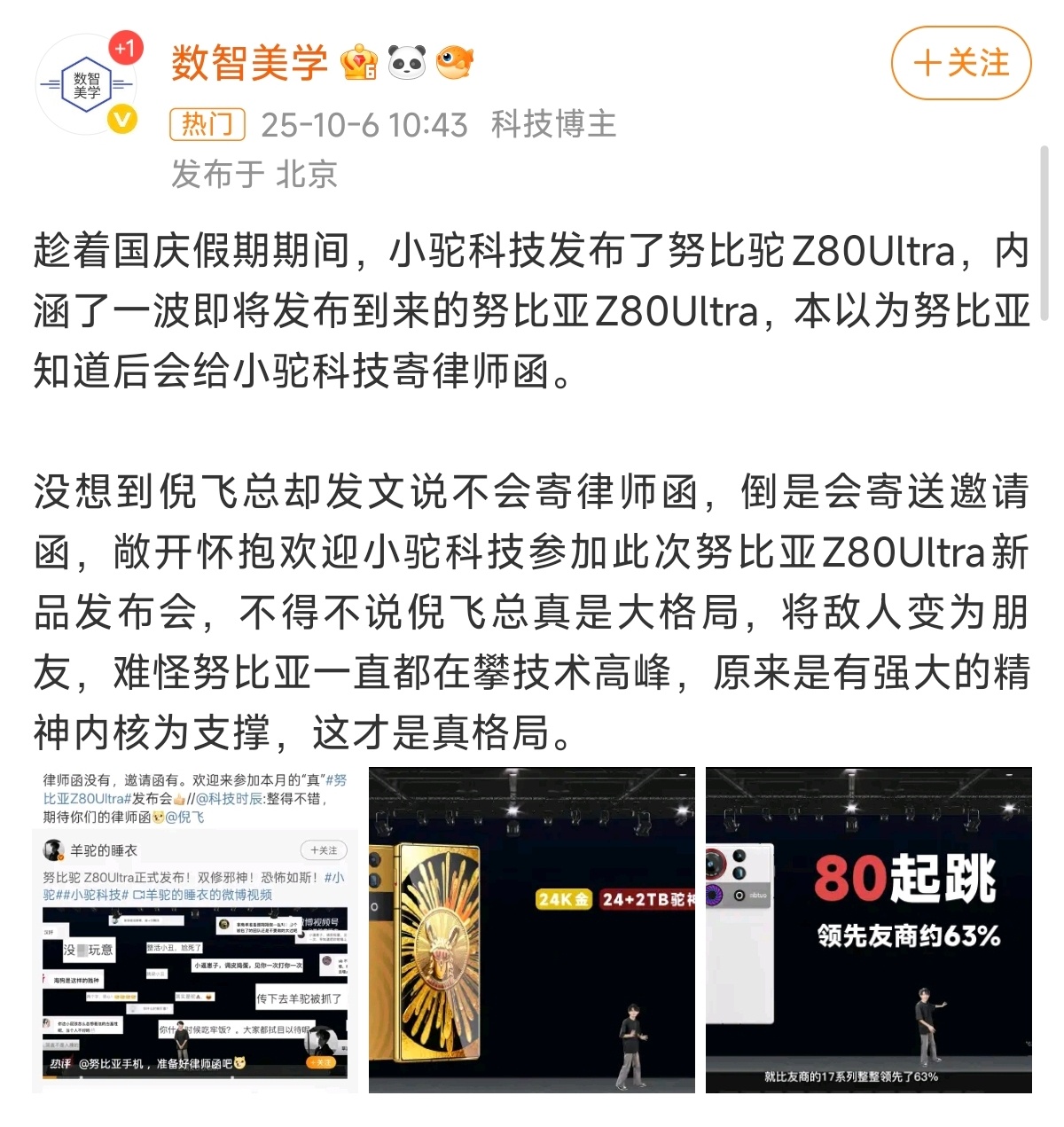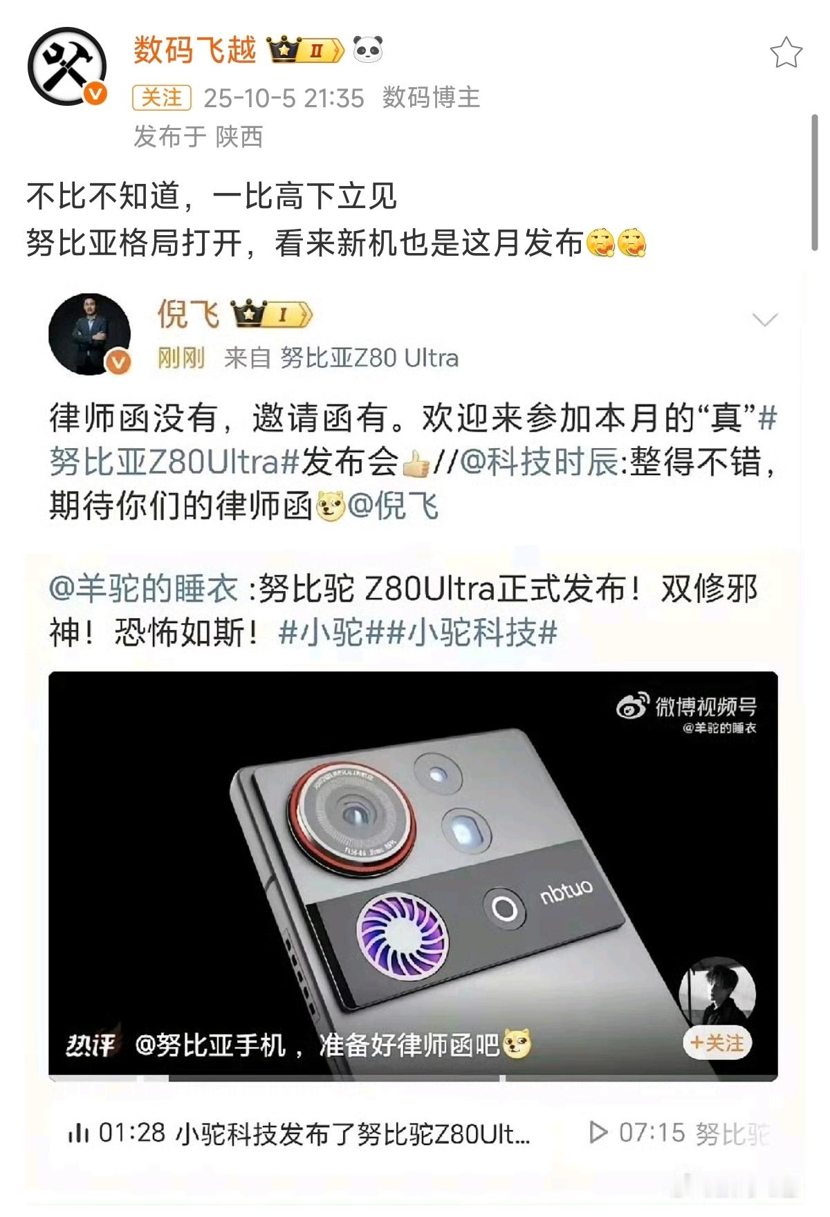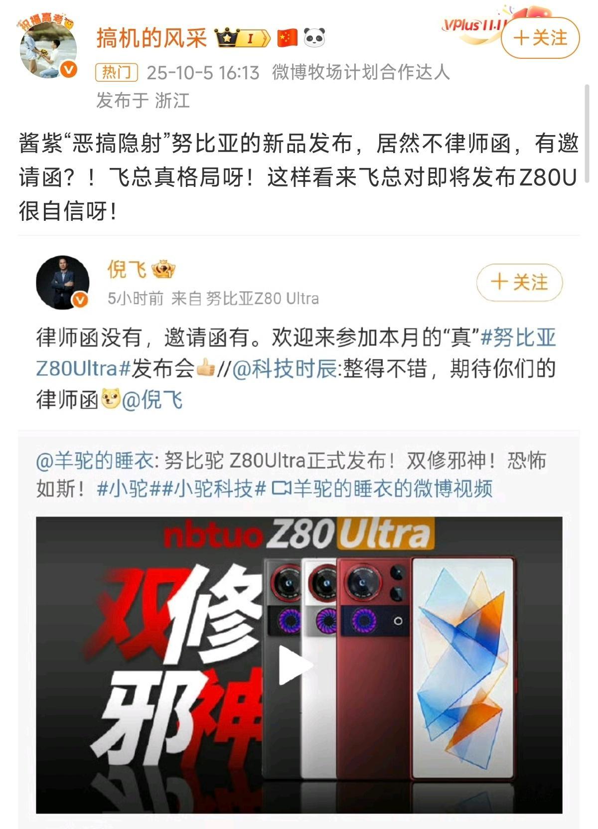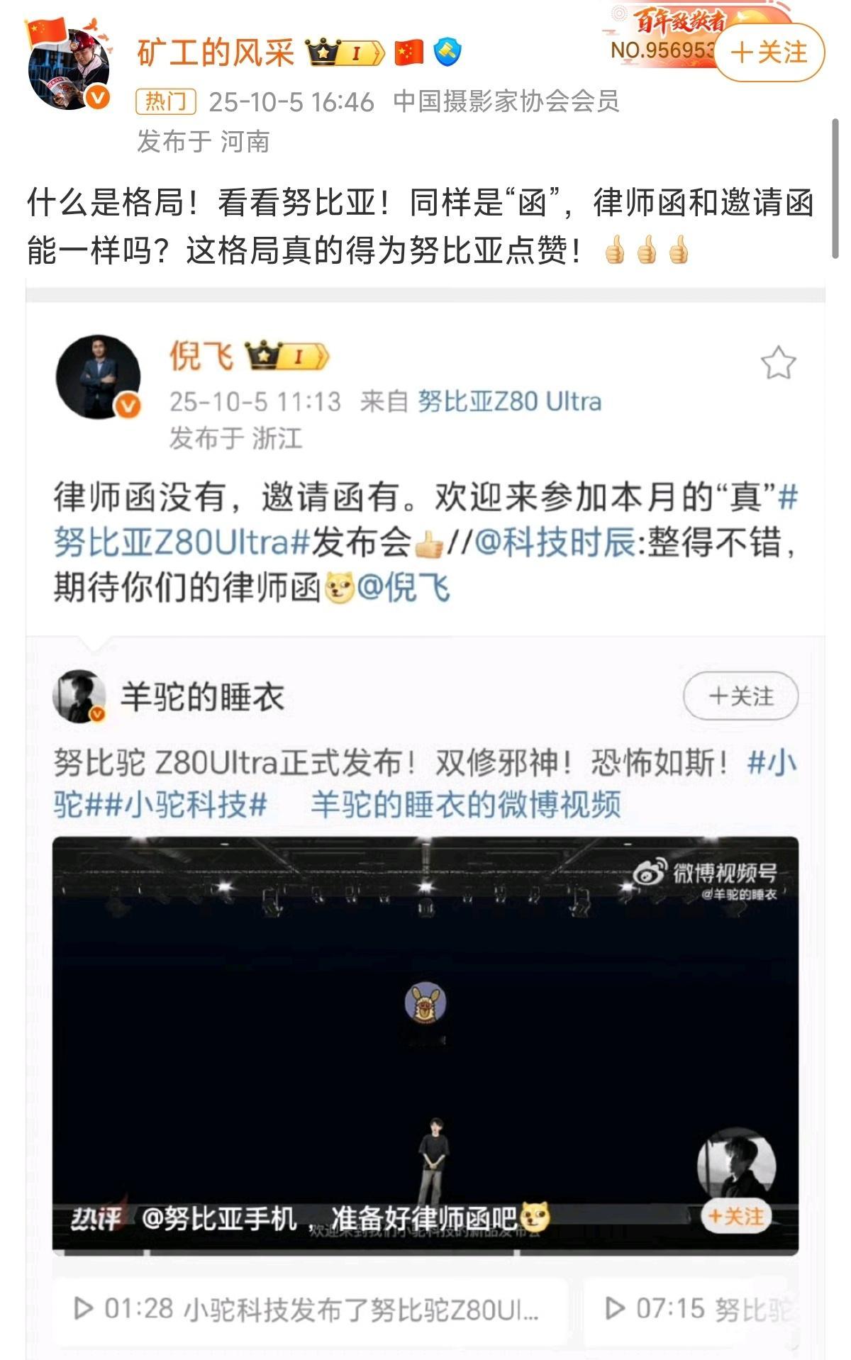 努比亚不寄律师函,人家努比亚给邀请函,格局!