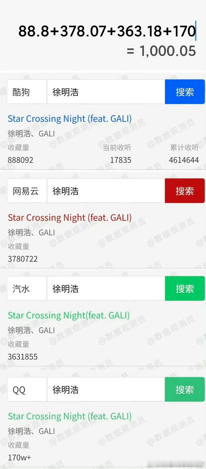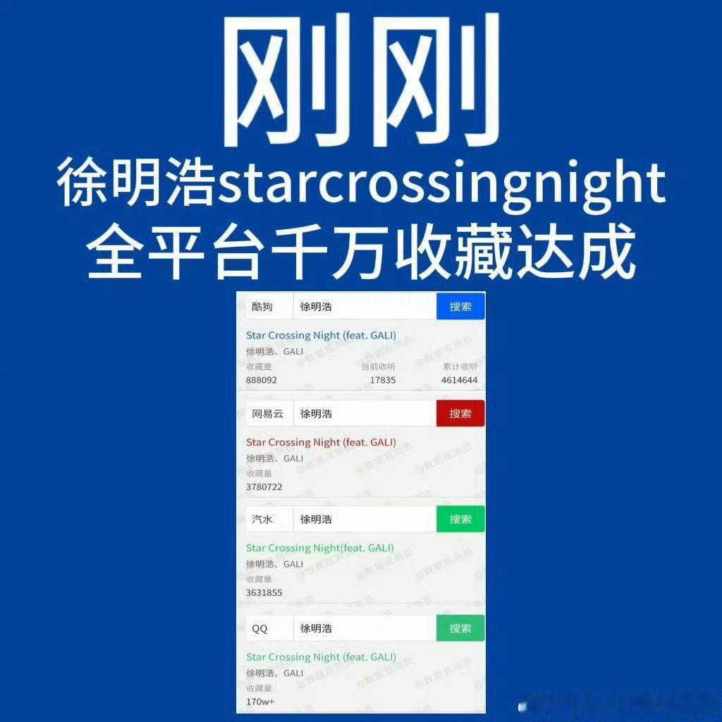 徐明浩starcrossingnight全平台收藏量已经破1000万了!其中网易