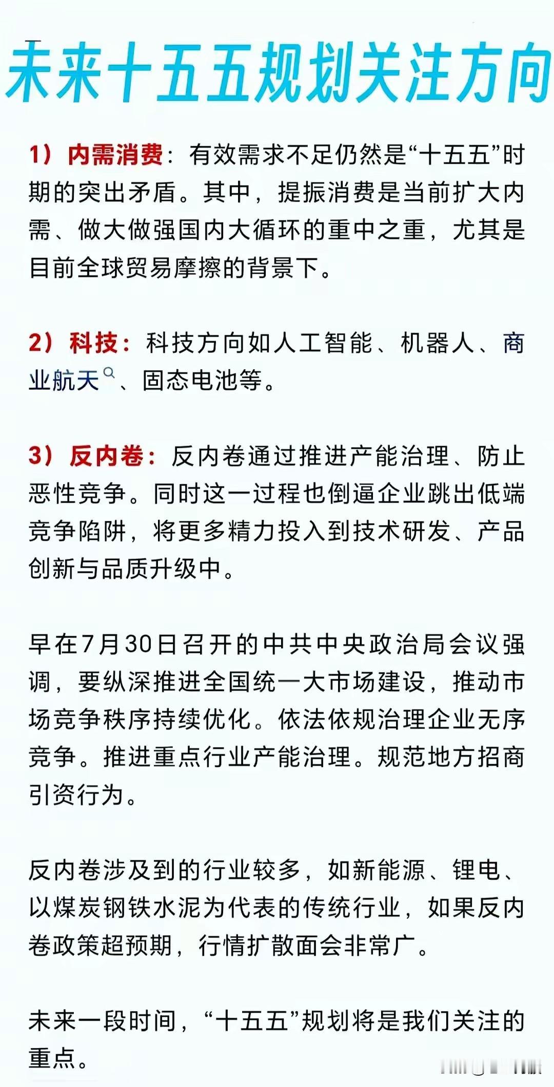 “十五五”规划方向与关注重点: “十五五”规划聚焦多个前沿科技与新兴产业领域,