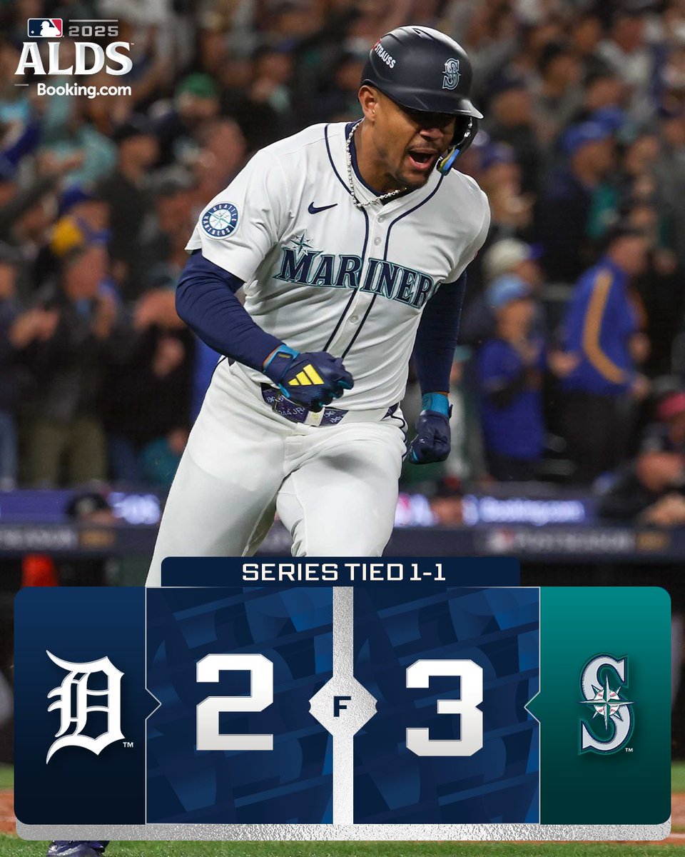 记者MLB官方X账号发推特报道,西雅图水手队在一场惊心动魄的比赛中扳平系列赛比分!#ALDS