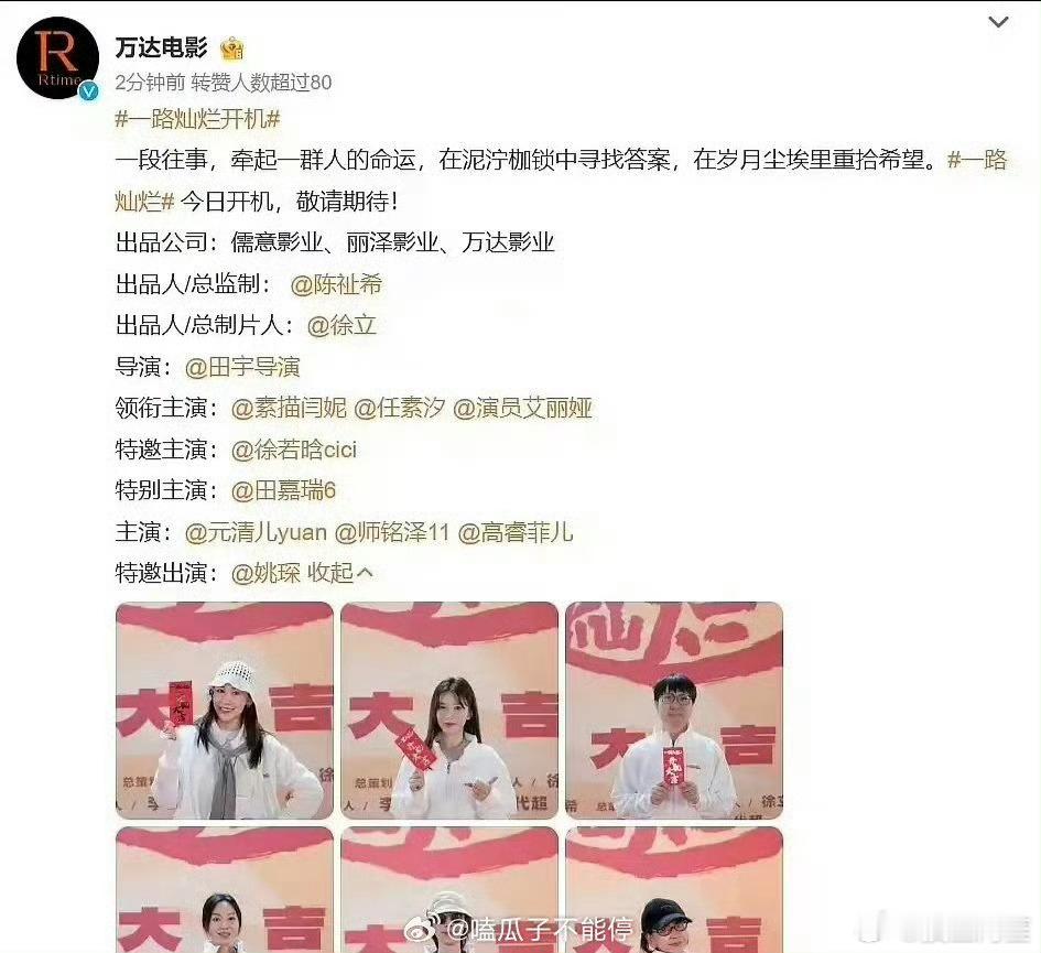 田嘉瑞粉丝在给《一路灿烂》剧组官博排字维权了