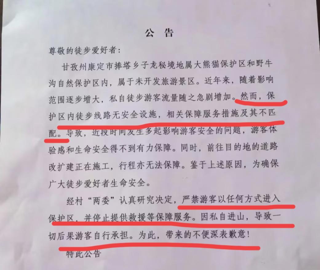 10月5号川西“子龙秘境”瀑布段一男性驴友坠亡,很多网友说,“就知道那里早晚得出事”。 据称摔下来的是位小伙子,商业团反穿。 瀑布下面的杜鹃林很滑,坡度有80度,对成手来说下去也不容易,是很危险的一段路。 有的人会选择绕行避开瀑布段,户外本来就有一定危险性,不是有腿就能走,得量力而行。 去年9月份当地村民委员会就发布公告,这条路线很危险,私自进山 ,出事后果自负。 (图片来源网络)