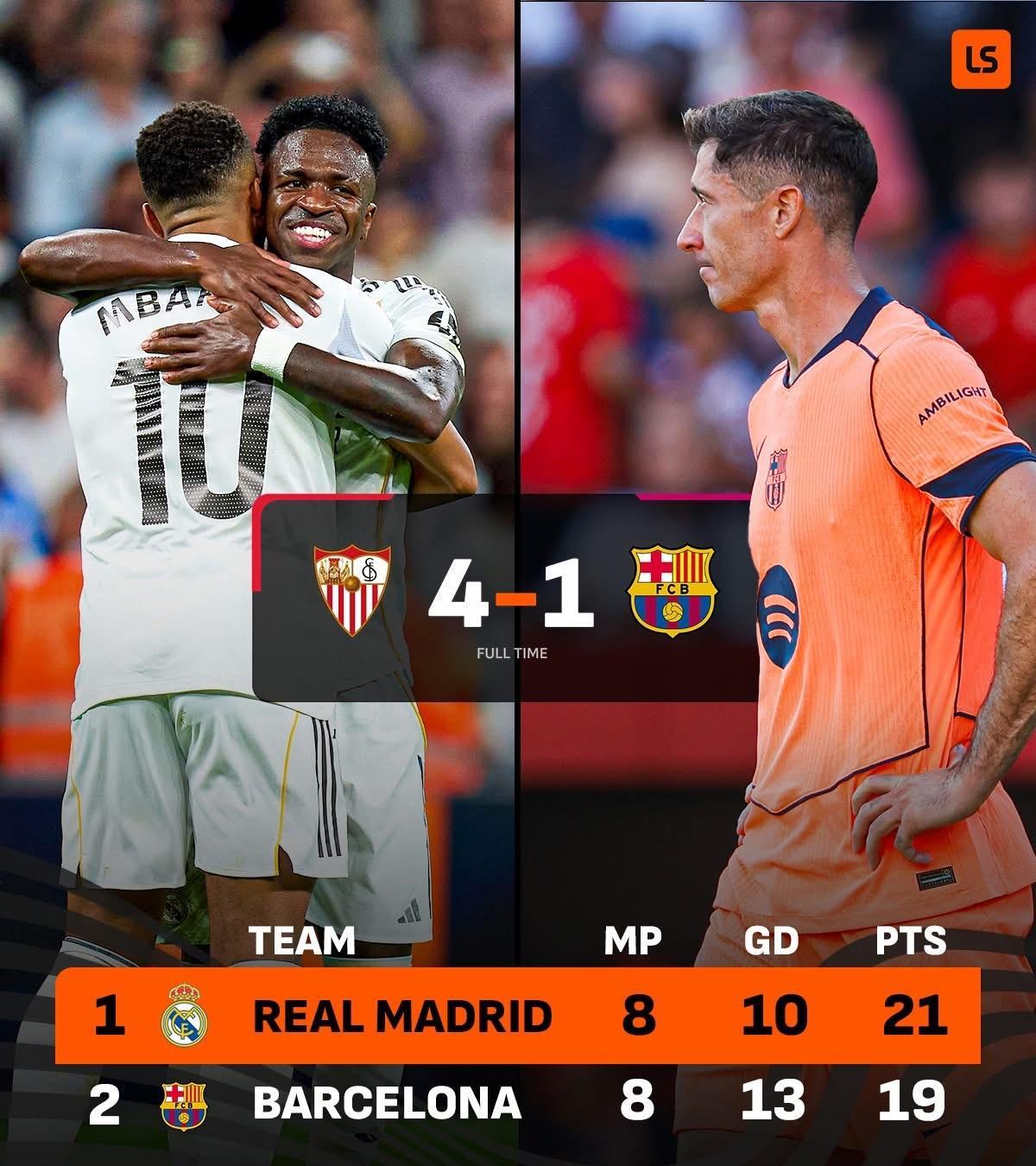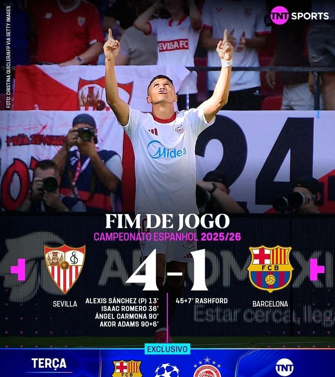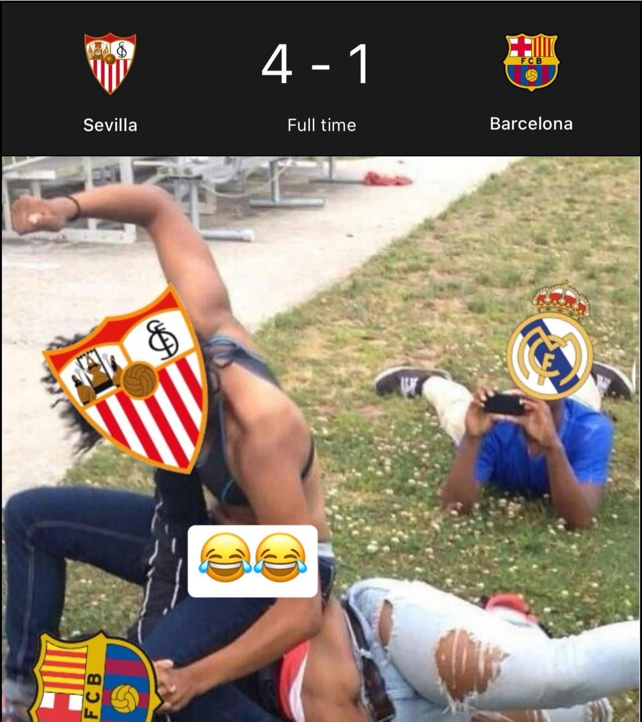 西甲赛事: 第八轮:塞维利亚对阵巴塞罗那 巴萨1比4惨败塞维利亚,遭遇本赛季西甲