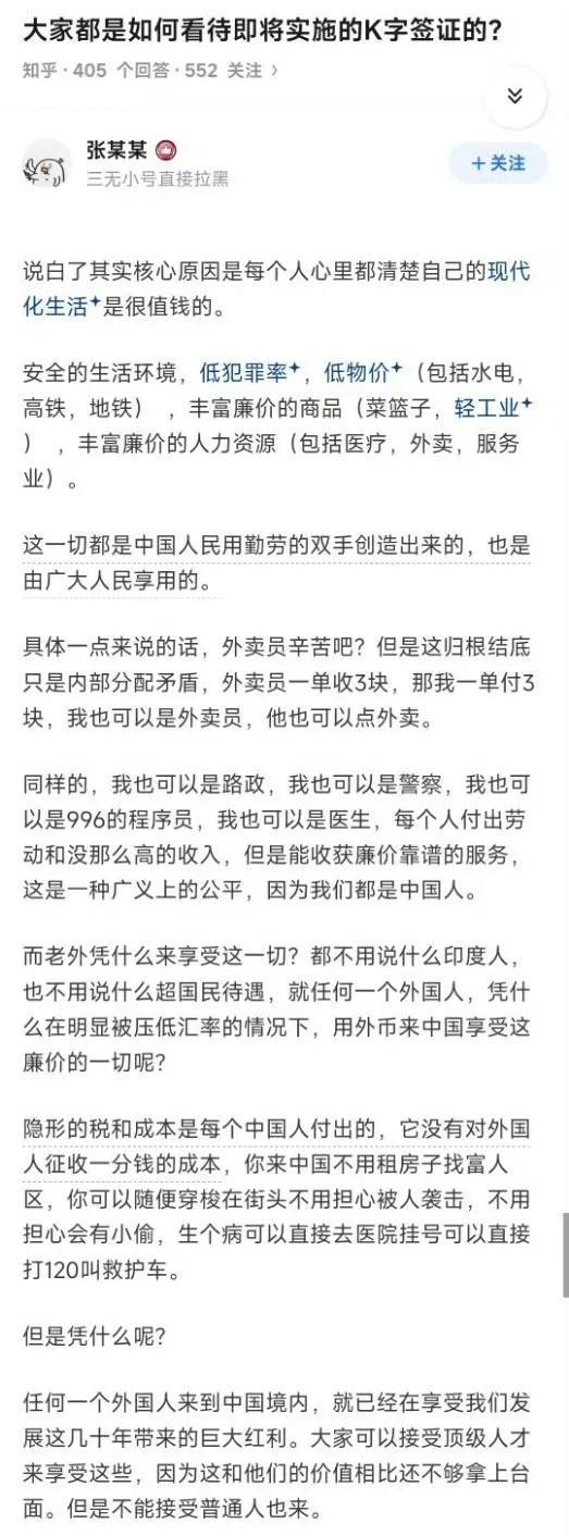 大家为什么都反对K签?这个网友的回答获得了很高的点赞。 K签政策一推出,就受到了