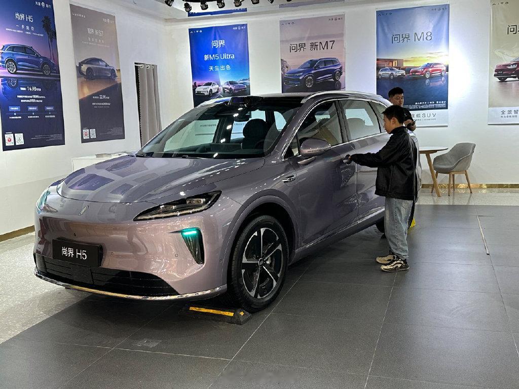 在北京鸿蒙智行体验中心的展厅内,一名工作人员正在为消费者讲解上市不久的享界S9T。与此同时,一旁的尚界H5吸引了孩子们的目光,他们好奇地打量着车上的各种配饰。而在不远处的洽谈区,有消费者正在进行购车前的关键事项商讨。