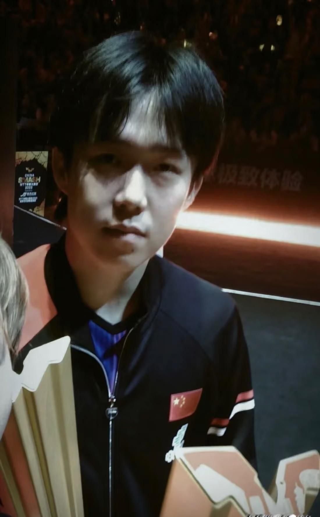 那天拍照,灯太猛,王楚钦一睁眼脸就僵了,不是摆脸色,是真没反应过来。 男队他站C