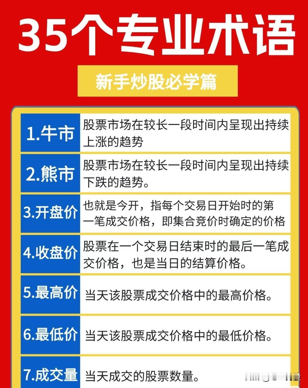 新手股民的股票专业术语科普信息图,总共介绍了35个常见的股票交易与金融市场相关术
