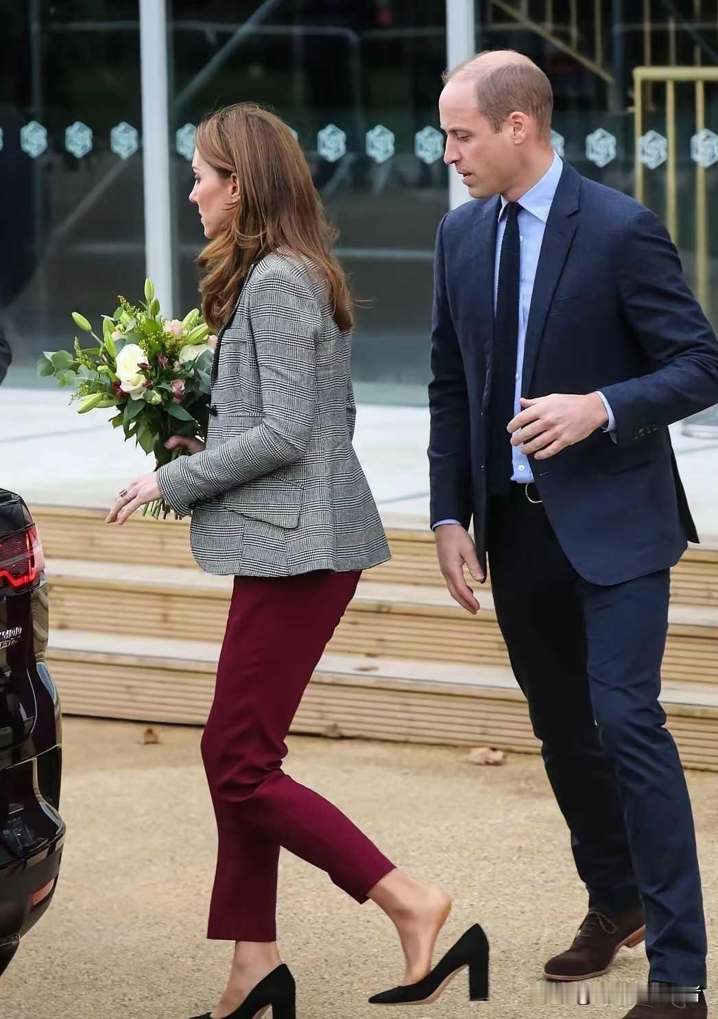 凯特王妃竟然也喜欢穿大一码的高跟鞋,看着威廉王子在后面好担心把王妃的鞋子踩掉。
