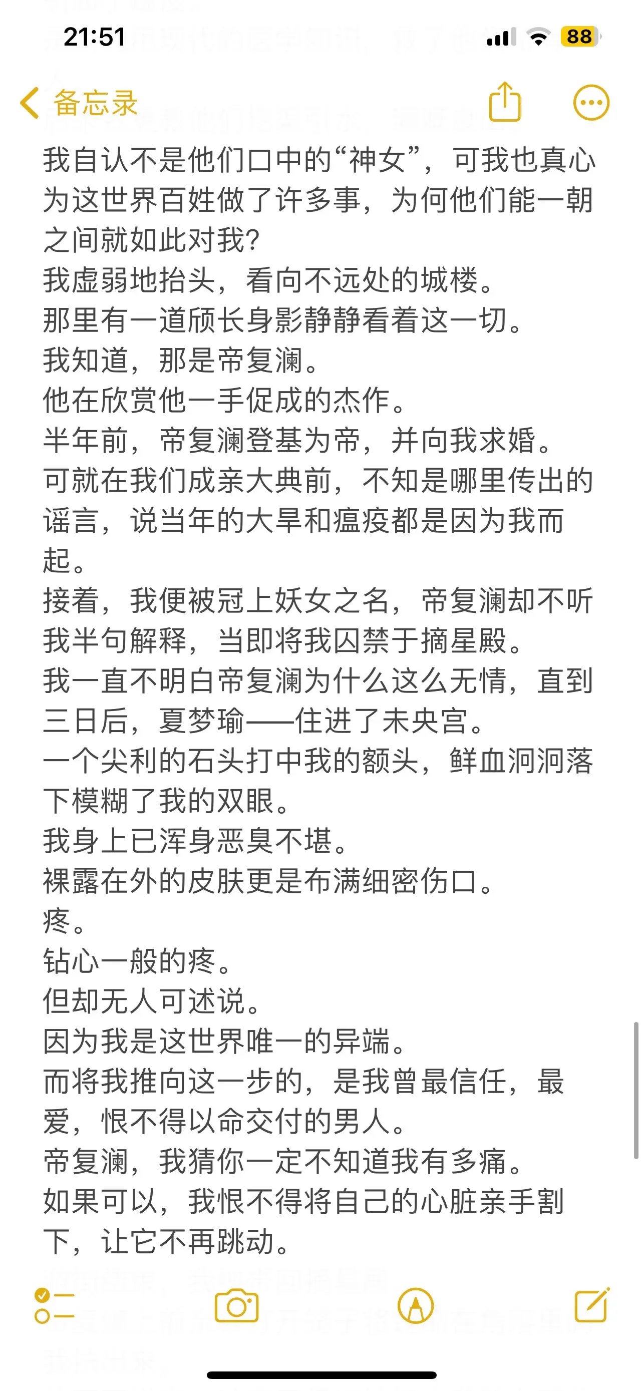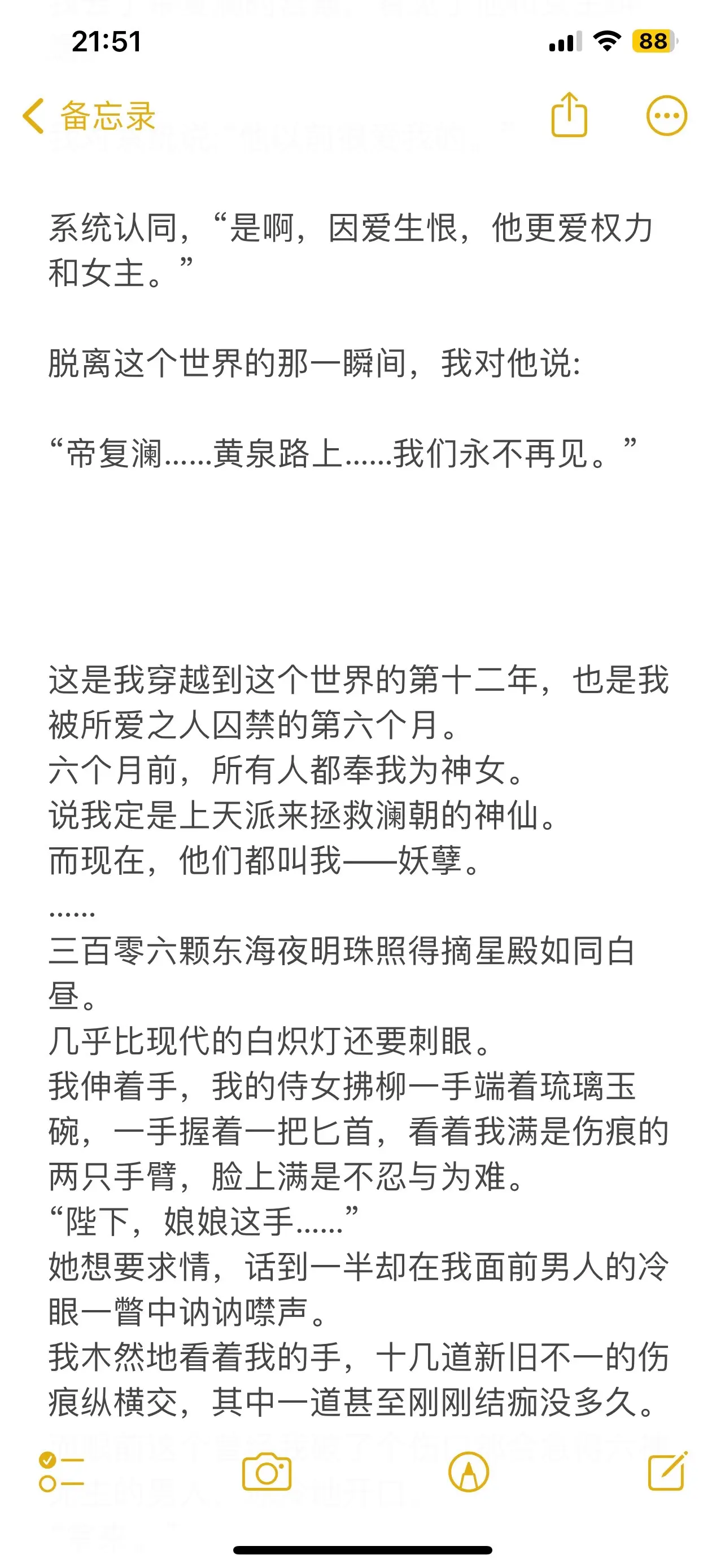 古言穿书误会重生梗虐恋文🔥。小说推文 每日推荐 日常穿搭分享系列 每日文摘分享 已完结 🍂这是我穿越到这个世界的第十二年,也是我被所爱之人囚禁的第六个月。六个月前,所有人都奉我为神女。说我定是上天派来拯救池朝的神仙。而现在,他们都叫我——妖孽。