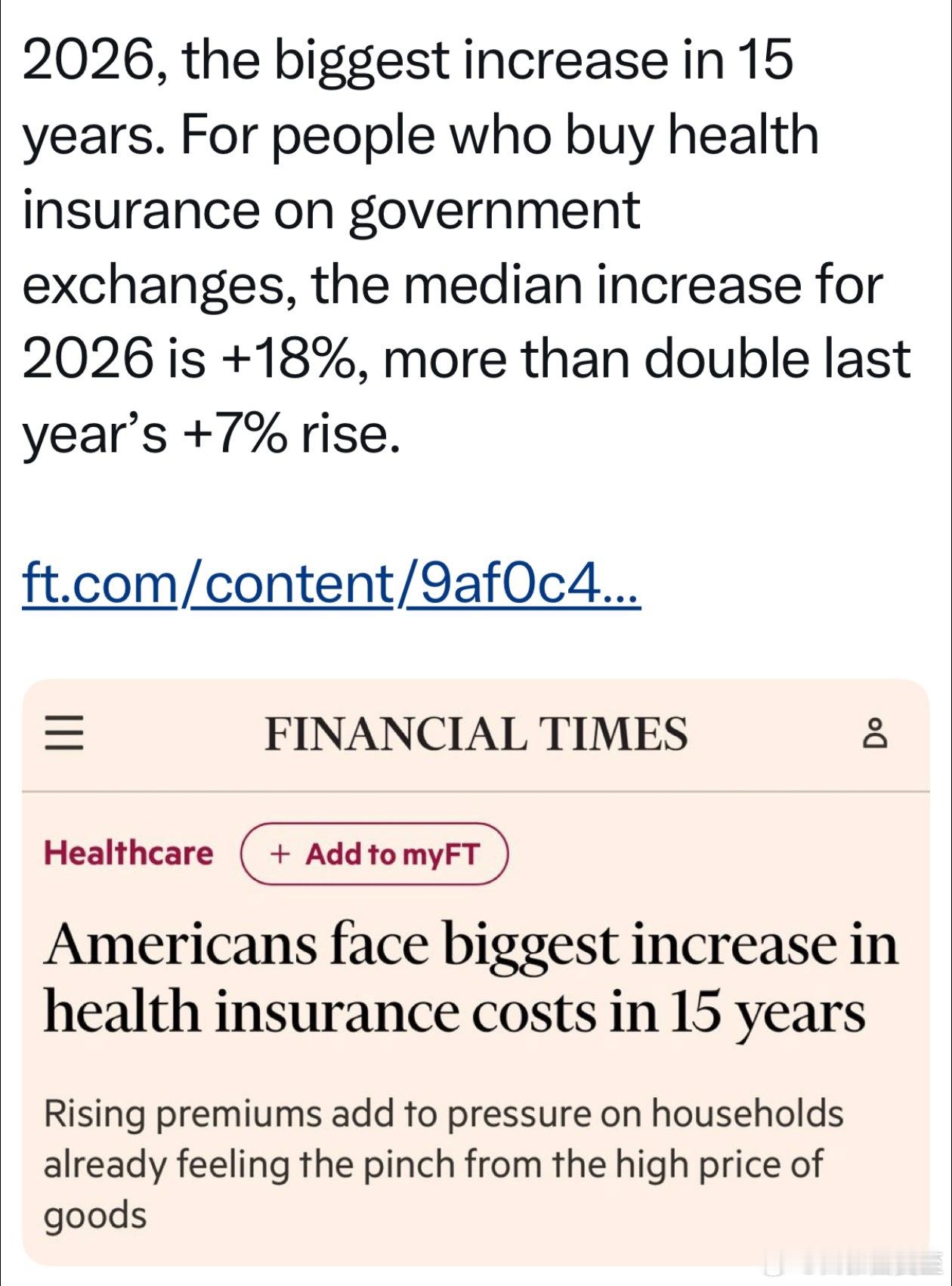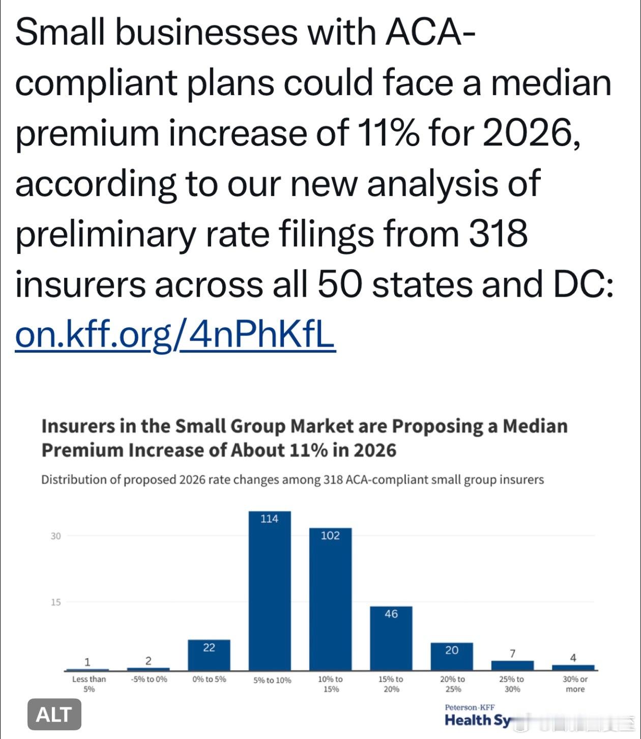 民主党还在争取医保补贴,如果共和党始终不同意,小企业明年医保费用预计增加11%,个人明年保费预计增加18%,十五年来最大涨幅