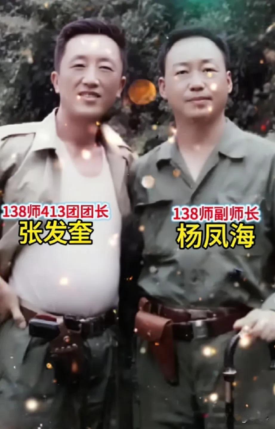 80年代,138师副师长杨凤海与138师413团团长张发奎在老山前线留下了一张珍