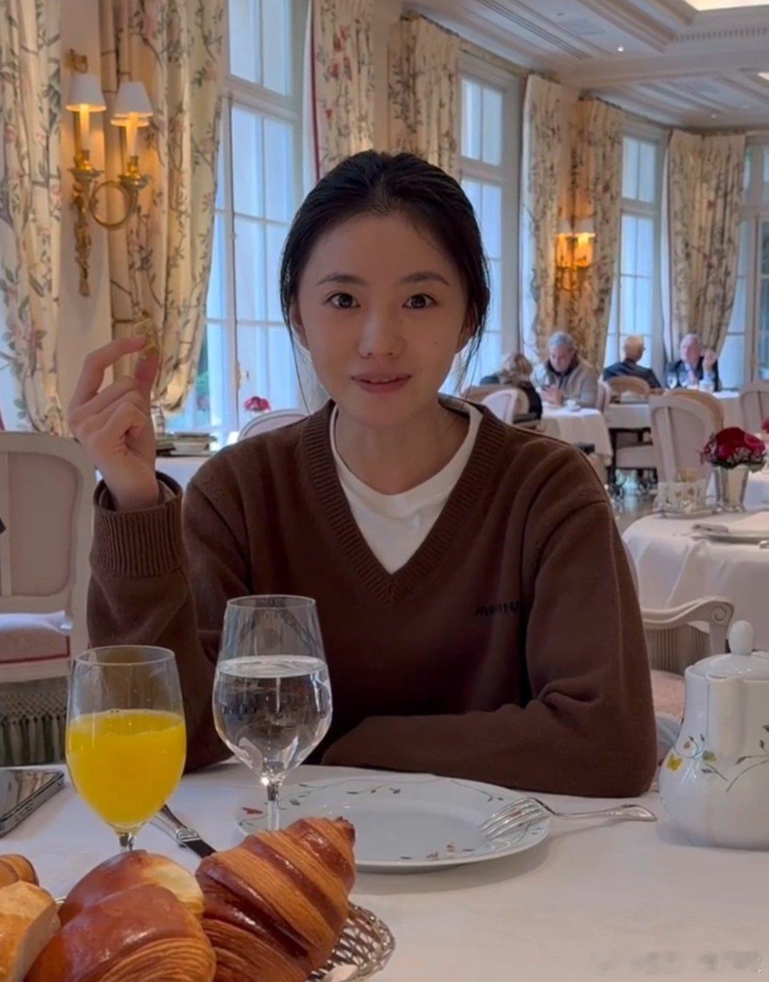 素颜的刘浩存赵今麦李庚希三个萌物!!我也想坐这桌 可以一起吃早餐吗?