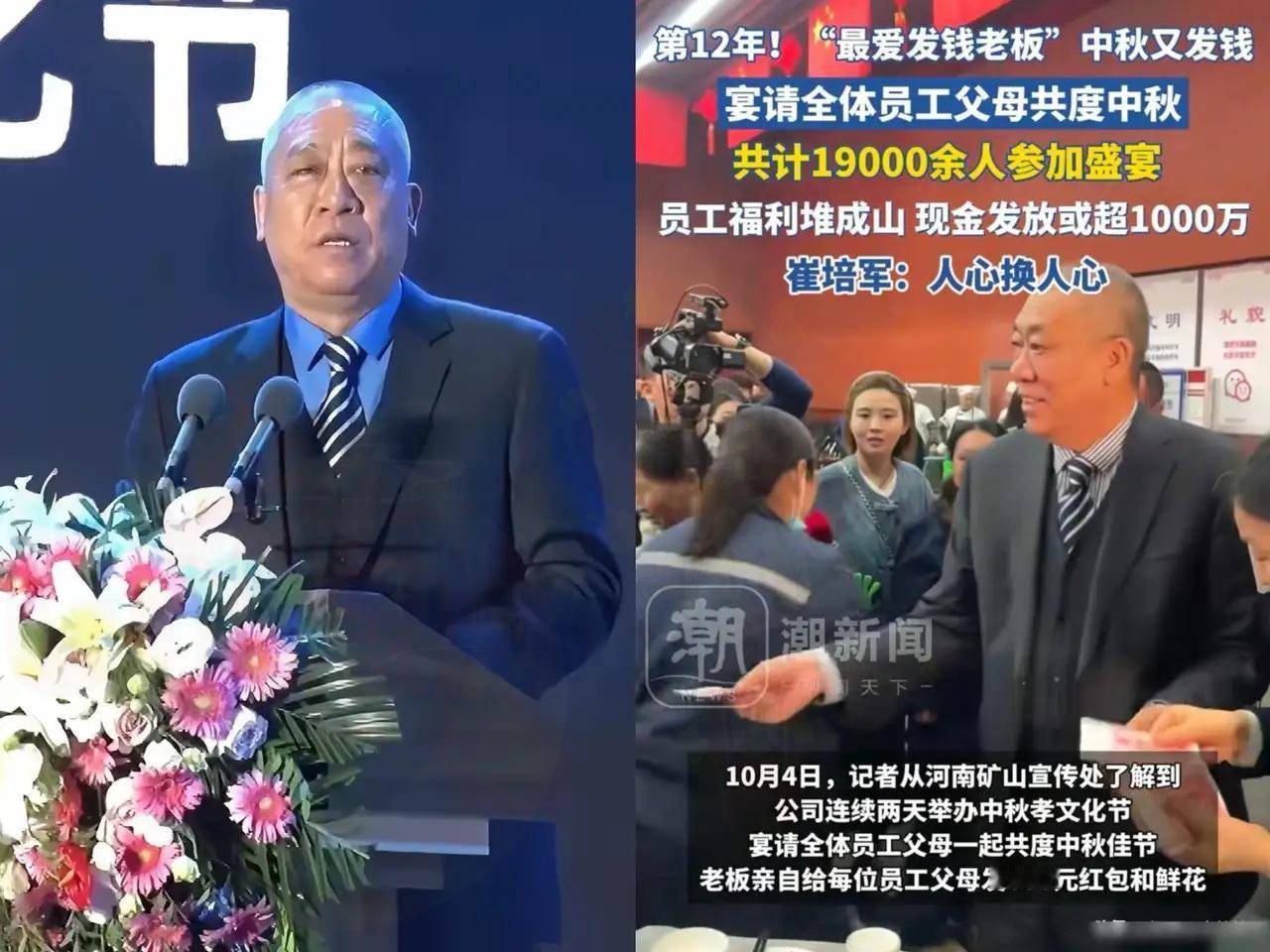 河南矿山崔培军真是个谜,越来越看不懂这个企业了。 说这个企业有钱吧,7000多员工一年利润才2亿,不算暴利的企业,偏把1.7亿砸给员工,年会现金堆成墙让大家数着拿,这哪是发钱,简直是撒“定心丸”。 别觉得他傻,这才是最精明的算计。别家忙着抠员工成本搞扩张,他倒好,中秋请近2万人吃席,给员工父母发红包坚持了十二年,保洁都能拿七千月薪,连雪天上班都能晚到。 崔培军自己都说,别画大饼,待遇到位员工才会把企业当家。 人心这东西比营销费值钱多了。员工踏实干活,企业能拿出高精尖产品服务央企,这才是稳赚不赔的生意。那些把员工当成本的老板,真该学学这“笨办法”。 你们说,要是老板都这么实在,谁还愿意跳槽?评论区聊聊~