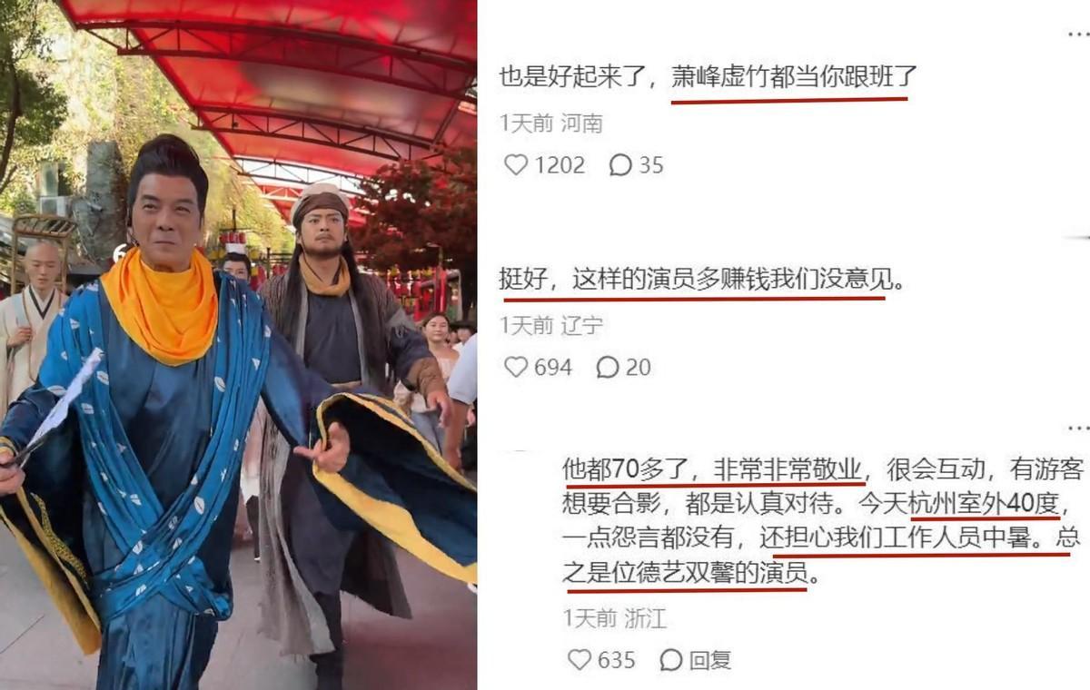 长假名场面!TVB演员加班打工,62岁江华再就业,79岁罗家英更卷 这个长假,最火的景点不是山也不是水,反倒是咱们看着长大的那批香港老戏骨。 江华,都62岁了,一身“龙袍”往那一站,感觉当年追《九五至尊》的日子一下就回来了。还有罗家英老师,快八十的人了,顶着大太阳唱《Only You》,那股子精气神,年轻人看了都得说声好。 李国麟、郑国霖他们也没闲着,都穿着戏服在各个景区里头跟游客互动,合影签名,忙得不亦乐乎。 好多人看到这画面,心里头五味杂陈的。一方面是觉得亲切,这不就是咱们的童年回忆嘛,以前只能在电视里看,现在居然能在景区碰上真人,跟做梦一样。 另一头呢,又觉得他们一把年纪了,这么热的天还出来跑活动,确实不容易。可你再看他们那个状态,一点没有敷衍的意思,一举一动都带着戏,这就是老一辈演员的职业素养吧,钱不好挣,但他们挣得体面。 网上好多人都在讨论这事儿,说到底,还是港剧的IP太强大了。这些角色已经刻在了一代人的记忆里。 于是就有个想法冒出来了,说干脆建一个TVB主题乐园得了。把那些经典的场景,什么桃花岛啊、古惑仔的铜锣湾啊,都给它一比一复刻出来。让这些老戏骨们不用再东奔西跑,直接在乐园里“上班”,演的还是自己最拿手的角色。 这么一来,他们有个安稳的舞台,咱们这些观众也能有个地方去回味青春。想想看,在“桃花岛”偶遇黄药师,在“皇宫”里听雍正爷讲两句,这体验可比去普通景区有意思多了。这波啊,是双赢。