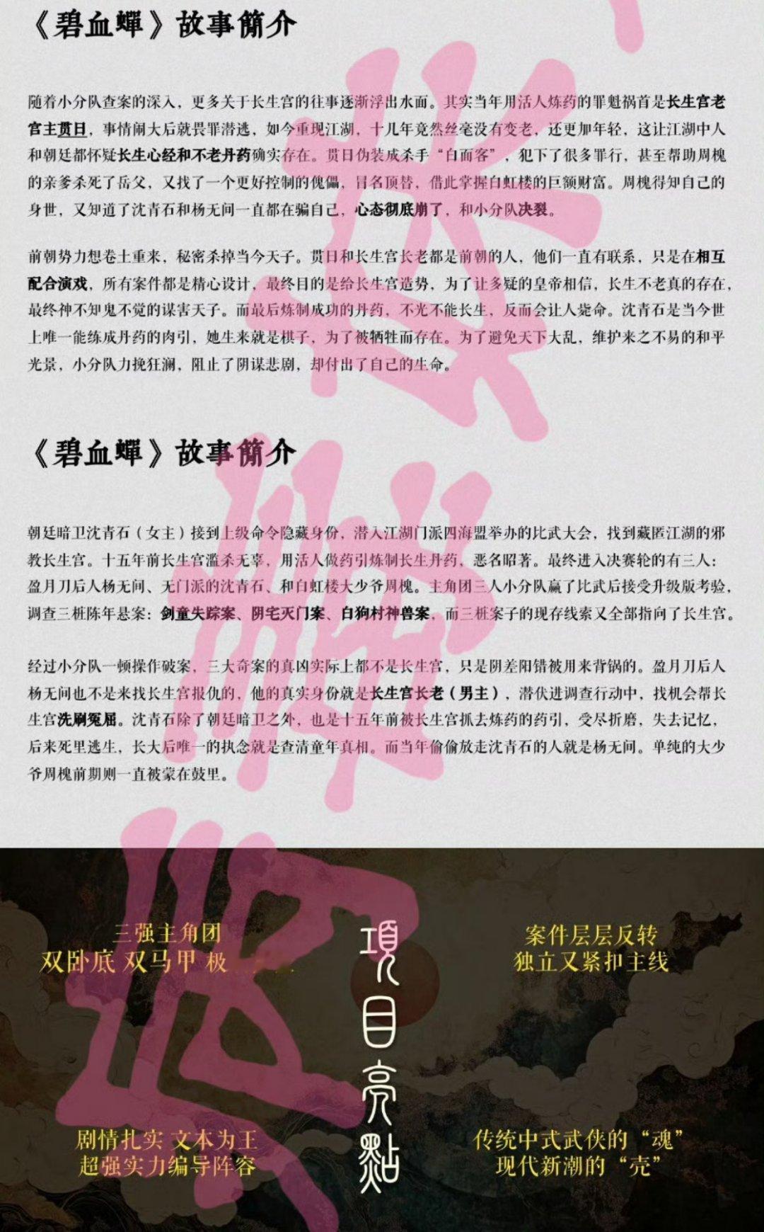 侯明昊 徐振轩《碧血蝉》项目PPT来了,主打武侠➕探案!