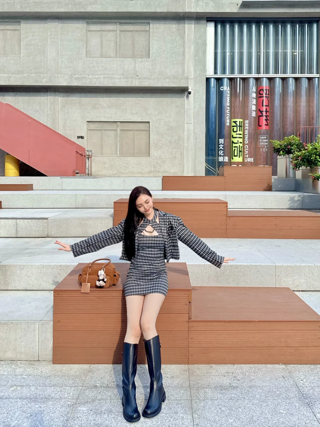 - 秋天🍂来了 分享一套套装的穿搭 新买的牛皮高筒靴真的是万能搭配神器~ 皮质好软好舒服呀!!! 搭配设计款的套装很出片 棕色美拉德色系怎么能错过 新买的麂皮保龄球包也是时髦单品 很有质感~搭配一套满满的松弛感 👢:KISSCAT[游牧诗人]长靴 💼:locoollab流浪包
