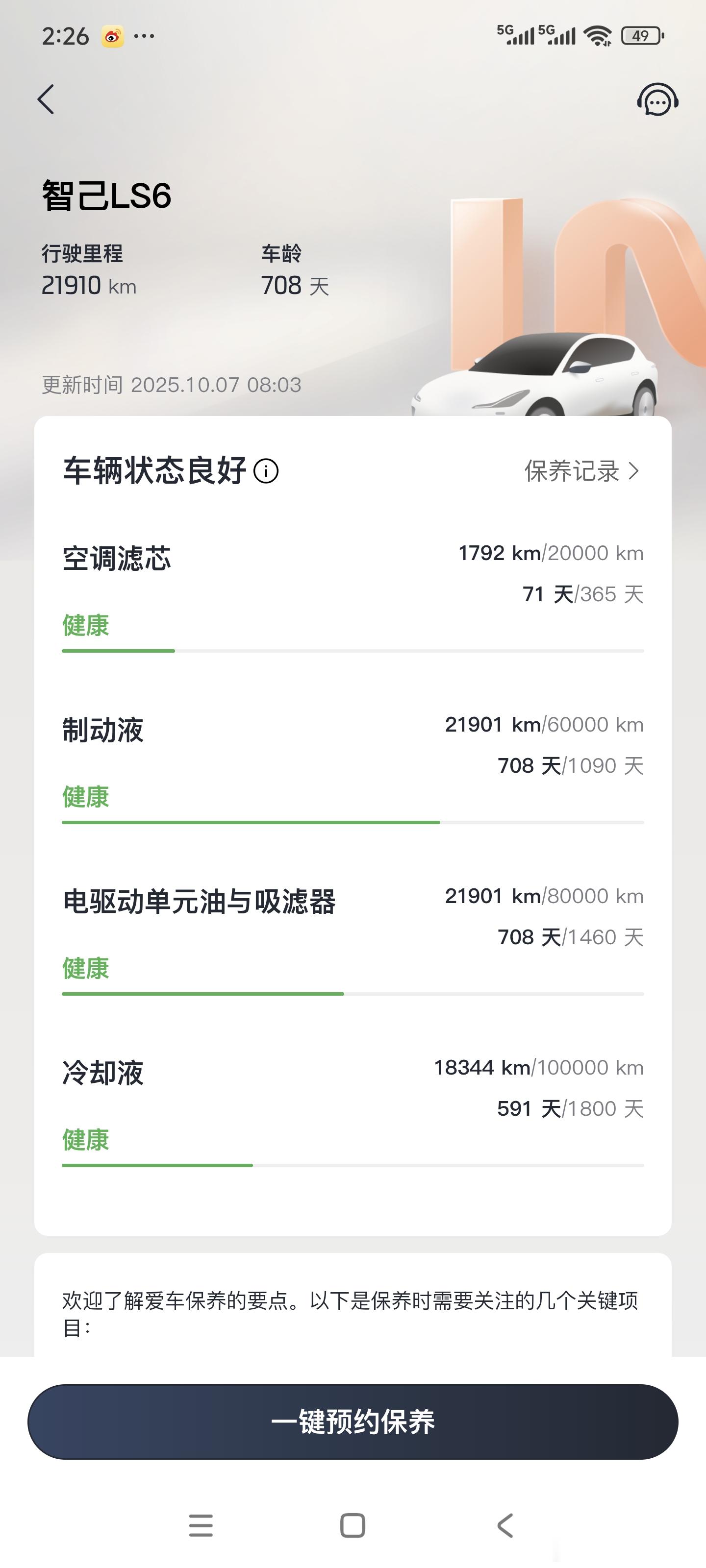 智己app的车辆保养提醒做得真好各种需要定期更换的零部件的寿命都清晰可见,爽啊智