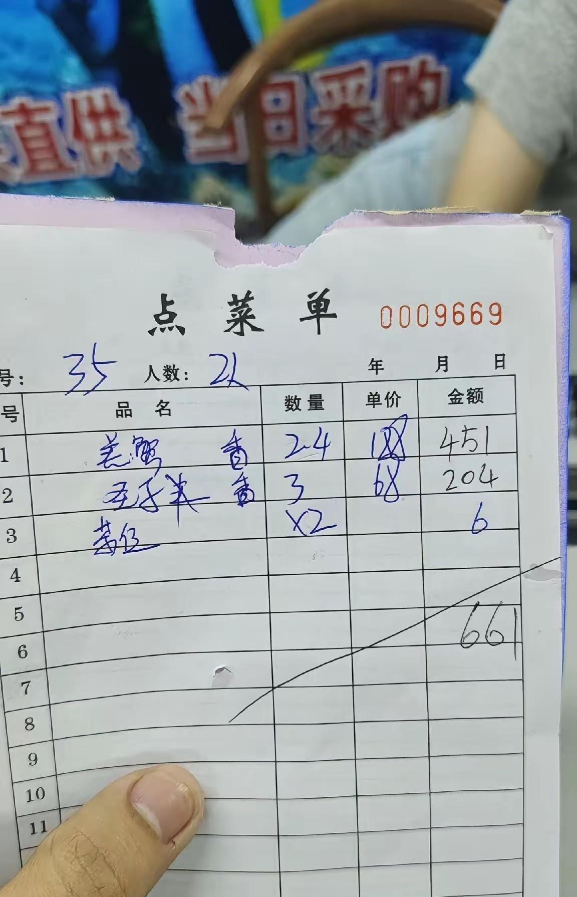 这两盘菜就算连盘子一起卖给我,我都觉得值不了661元! 男子在广东惠州旅游,在一家海边餐厅吃饭时,点了炒蛏子和螃蟹,问价的时候老板不说,让男子吃完再报价,可让人没想到的是,等男子去结账的时候,发现这两盘菜竟然要661元,男子称疑遭“海鲜刺客”! 对此这家餐厅老板回应:顾客点菜时,已明确告知价格和斤数,膏蟹2.4斤,每斤188元,共451元。蛏子3斤,每斤68元,共204元,加上2人茶位费总计661元。 虽然我不知道现在的海鲜,到底是不是真的有这么贵,但是我很想问下这家餐厅的老板,这盘子里的螃蟹,难道是铁链捆的吗,2.4斤的螃蟹,目测这盘子里的螃蟹,都超不过5只吧?还有盘子里的蛏子,就算连盘子一起秤,那能有3斤吗? 那么大家觉得,这两盘菜收顾客661元,到底这是饭店的正常价格呢,还是遇到了“海鲜刺客”呢?