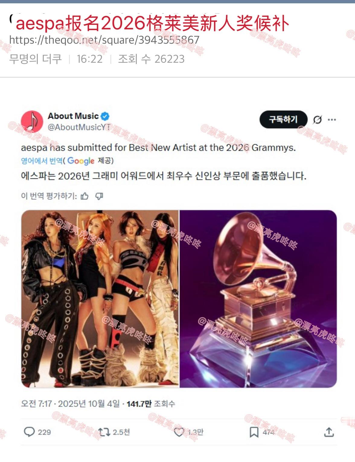 【热贴】aespa报名格莱美新人奖,韩网评论区sm骑和hybe骑在打架