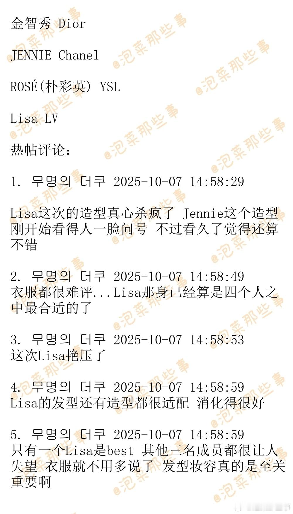 BLACKPINK四名成员巴黎时装周造型