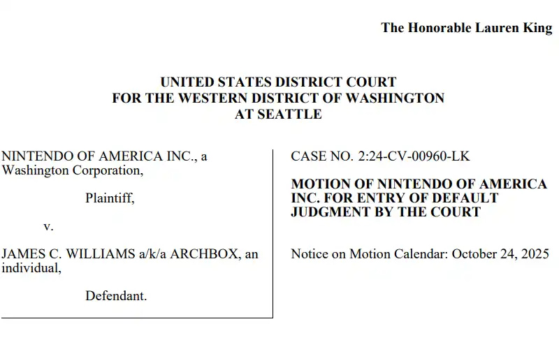 美国任天堂已提交动议,向詹姆斯·C·威廉姆斯索赔450万美元,该被告在网络上以"Archbox"之名闻名,涉嫌运营一个大型任天堂Switch盗版网站。根据法庭文件,该诉讼指控威廉姆斯管理多个未经授权的在线"免费商店",这些网站在2019年至2024年间共同分发了数万款盗版任天堂Switch游戏。