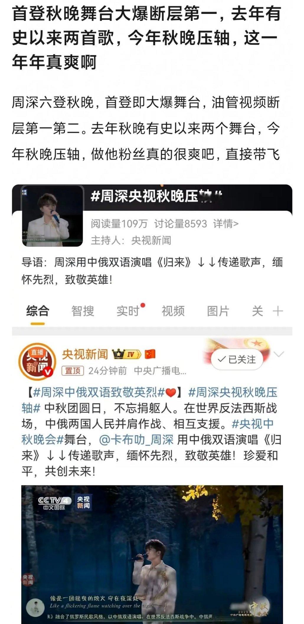 今年周深独唱的中俄双语《归来》还是央妈盖章认证的压轴舞台哎[666]
