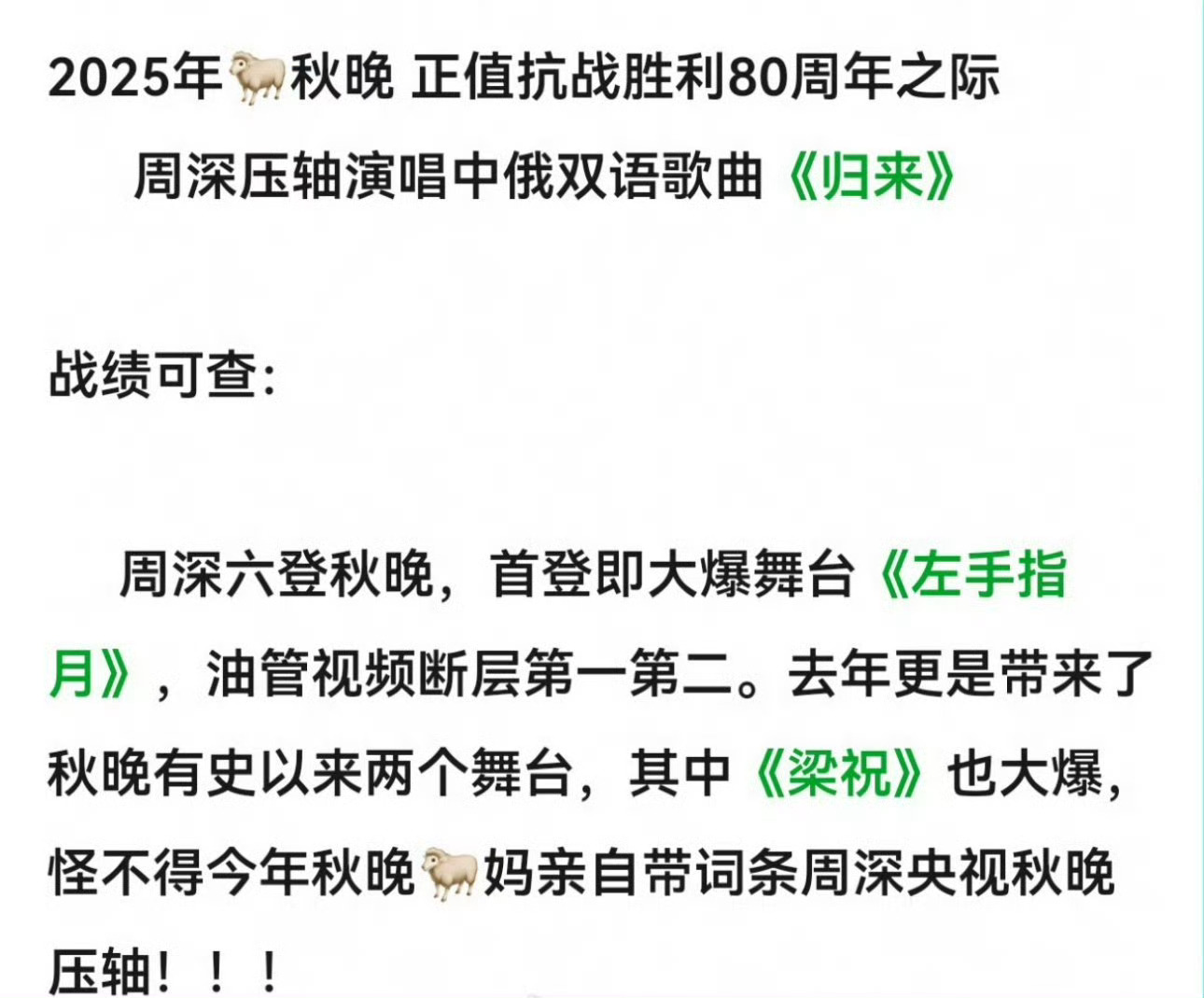 才知道一个热知识,周深2020-2025连续6年登秋晚!