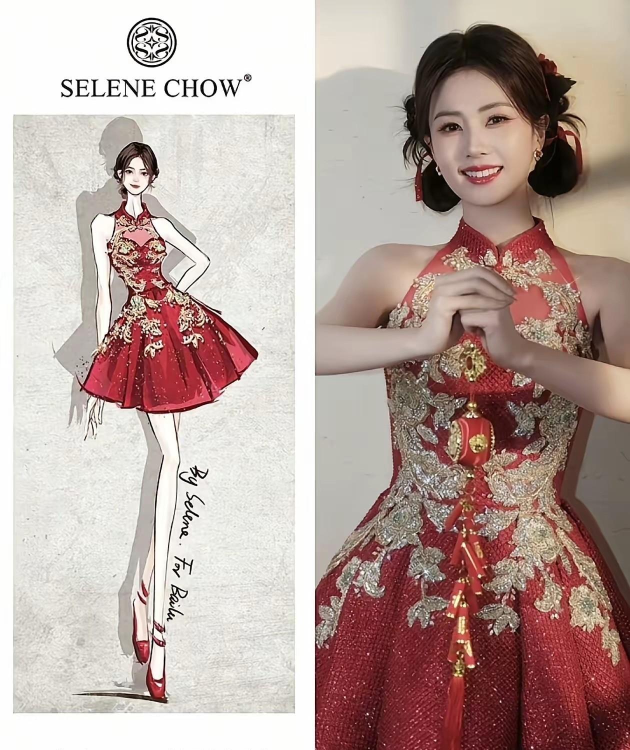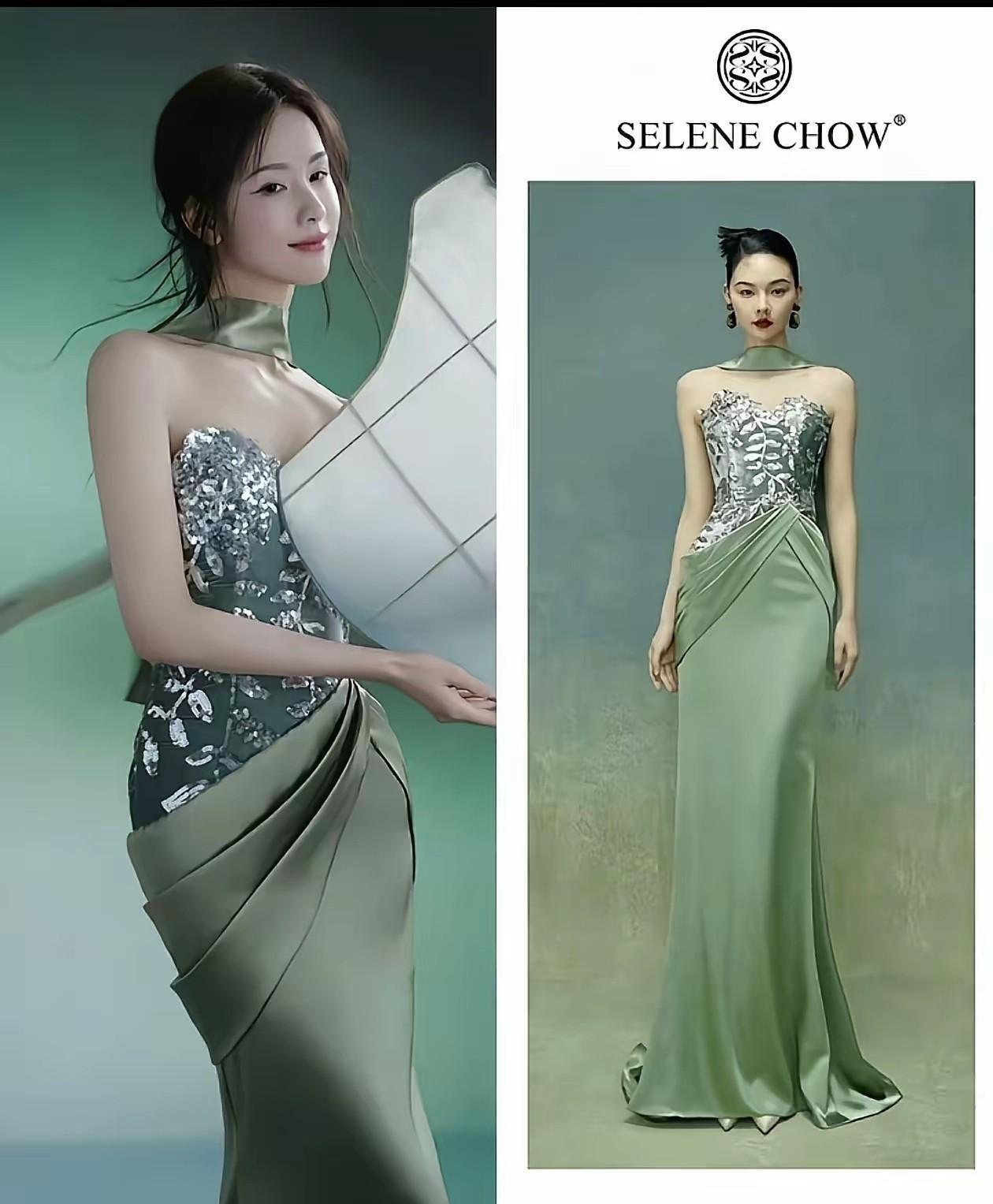 董璇坐下来的时候才看到,这件旗袍的开叉、也太长了点吧……再看看张维伊,那双大头