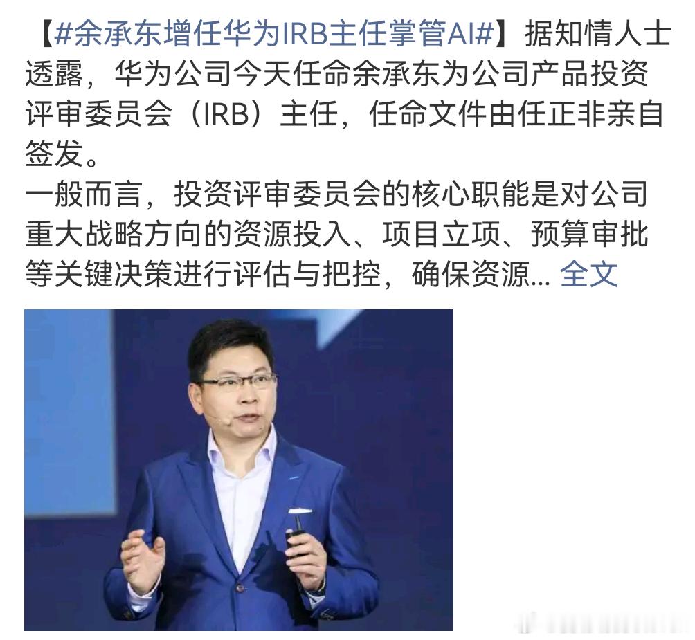 所以知道为什么前两天华为IRB主任认命是余承东掌管AI了吧[doge]