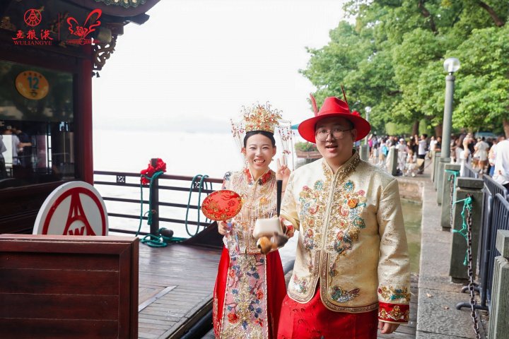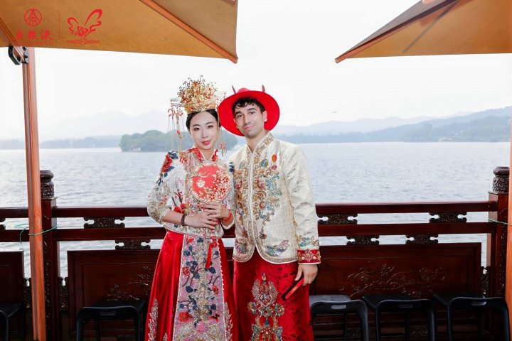 “我太喜欢中国文化了,今天是我第一次穿中国的婚礼服。”坐在观众席看演出的大卫激动不已地感叹道,“和爱人在西湖水上拜天地、赏大型水上实景表演、观无人机表演,让我感受到中国婚礼是如此的隆重,我的家人也来到了现场观礼!”