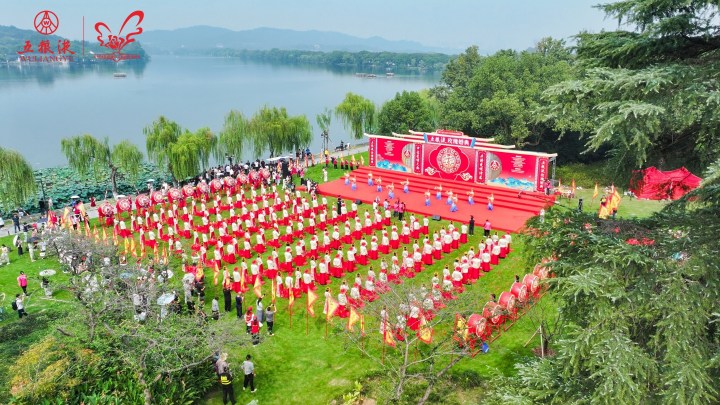 今年婚典以“中意爱情之都共谱爱情诗篇共筑和美生活”为主题,结合杭州山水人文之韵,凸显东西方爱情交融之美,实景打造了花港启程、花车巡游、红毯风采、彩船畅游、西湖迎亲、醉美喜宴、西湖盛典七大经典篇章,并首次在西湖上空放飞千架无人机贺喜,以科技赋能播撒甜蜜与浪漫,惊艳诠释传统婚仪与现代科技的交融。