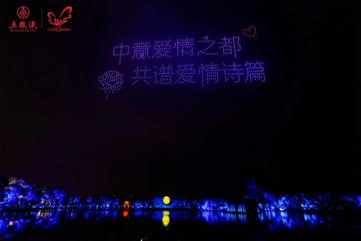 晚上8点,当千架无人机汇聚在西湖上空,黑丝绒般的夜空中出现了一朵巨型的“红玫瑰”,全场观众都情不自禁地发出了惊叹声。随后,天空中又陆续出现了“中意爱情之都共谱爱情诗篇”“爱在杭州情到永远”等祝福。