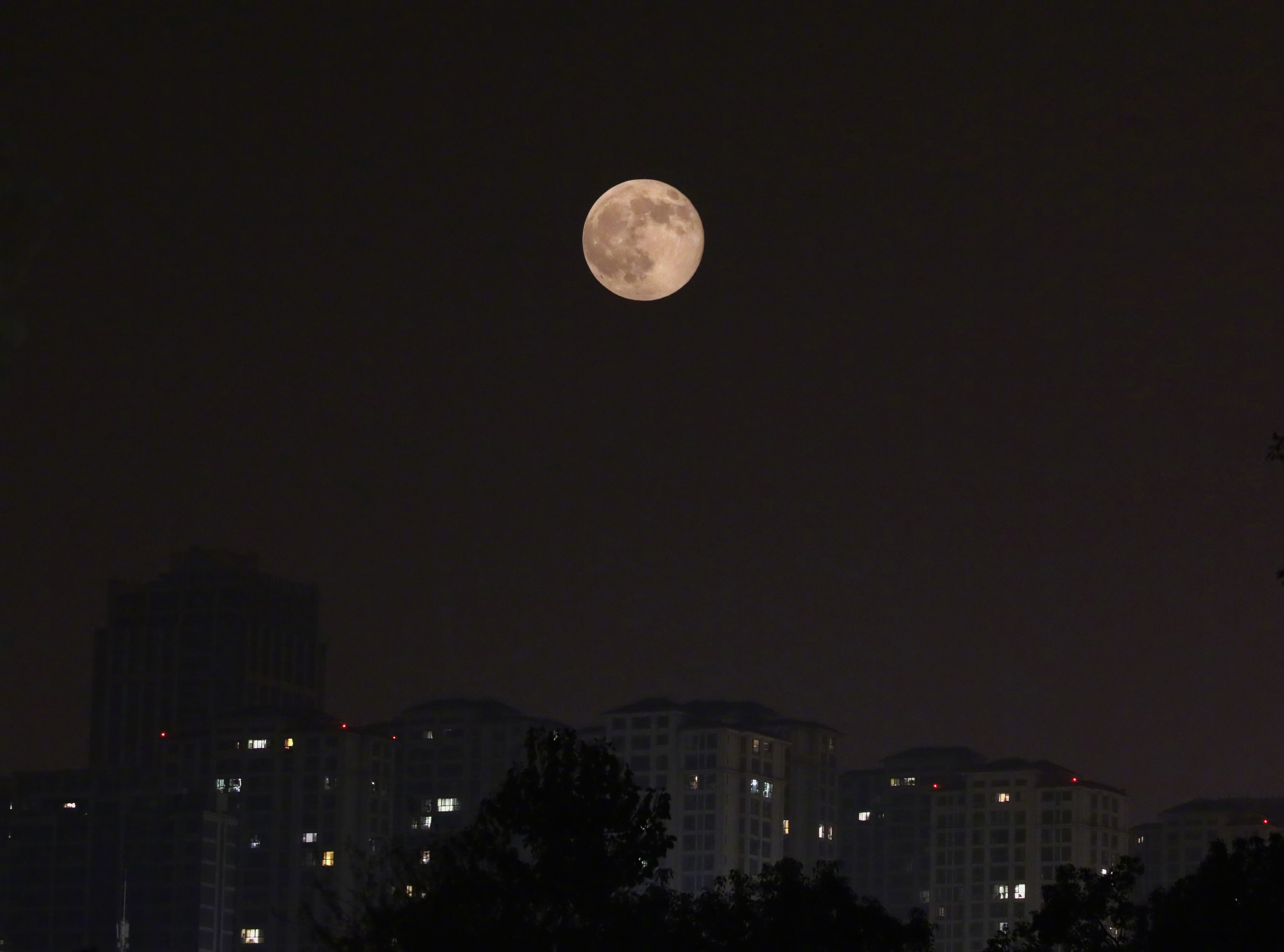 【#八月十六见超级月亮#,你看了吗?】10月7日晚,安徽淮南山南新区,#超级月亮[超话]#升空。今年中秋,月亮最圆时出现在10月7日11时48分,“十五的月亮十六圆”。当晚,半空中的月亮呈桔红色,随着月亮越升越高,颜色也慢慢变成月白色。你看了吗?#网络中国节·中秋#